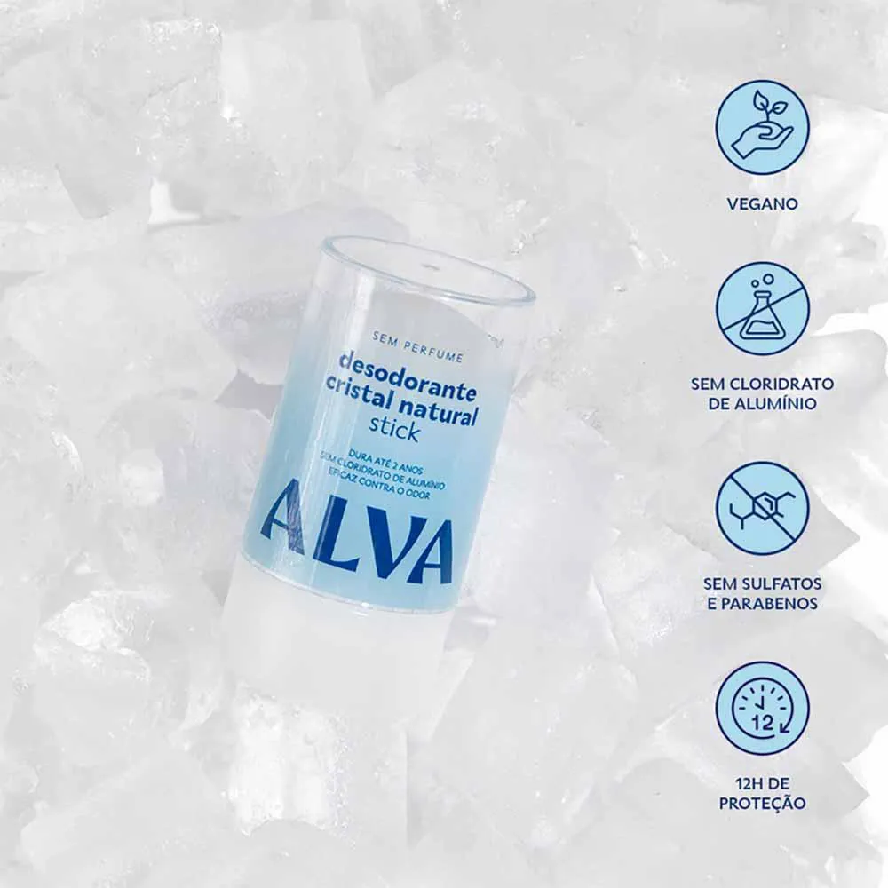 Este desodorante possui como principal componente o Cristal Alva, conhecido por suas propriedades antibacterianas naturais que auxiliam no controle dos odores corporais sem interferir nos processos naturais da pele.Indicação: