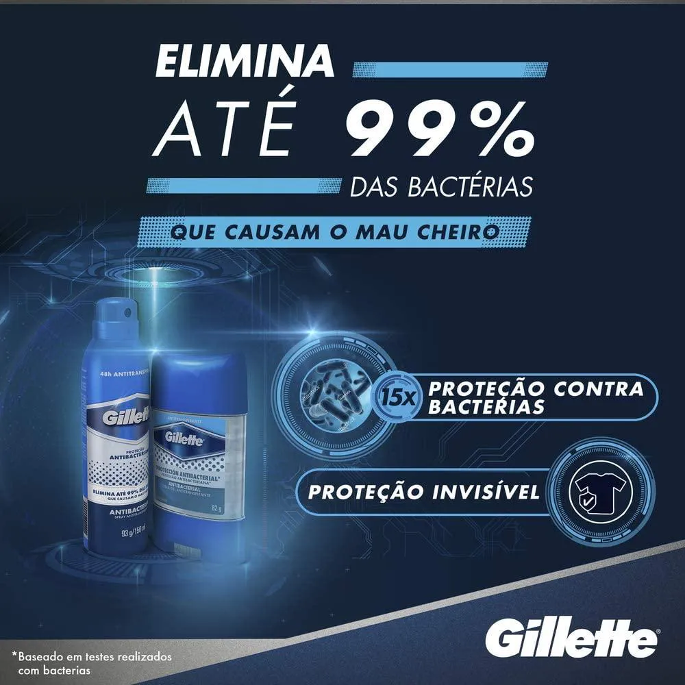 DESODORANTE ANTITRANSPIRANTE CLEAR GEL GILLETTE ANTIBACTERIANO MASCULINO 82G Desodorante Gillette Clear Gel Antibacteriano tem uma tecnologia exclusiva que encapsula o mau cheiro e libera uma fresca fragrância em seu lugar, para mantê-lo protegido inclusive durante os momentos de maior intensidade.