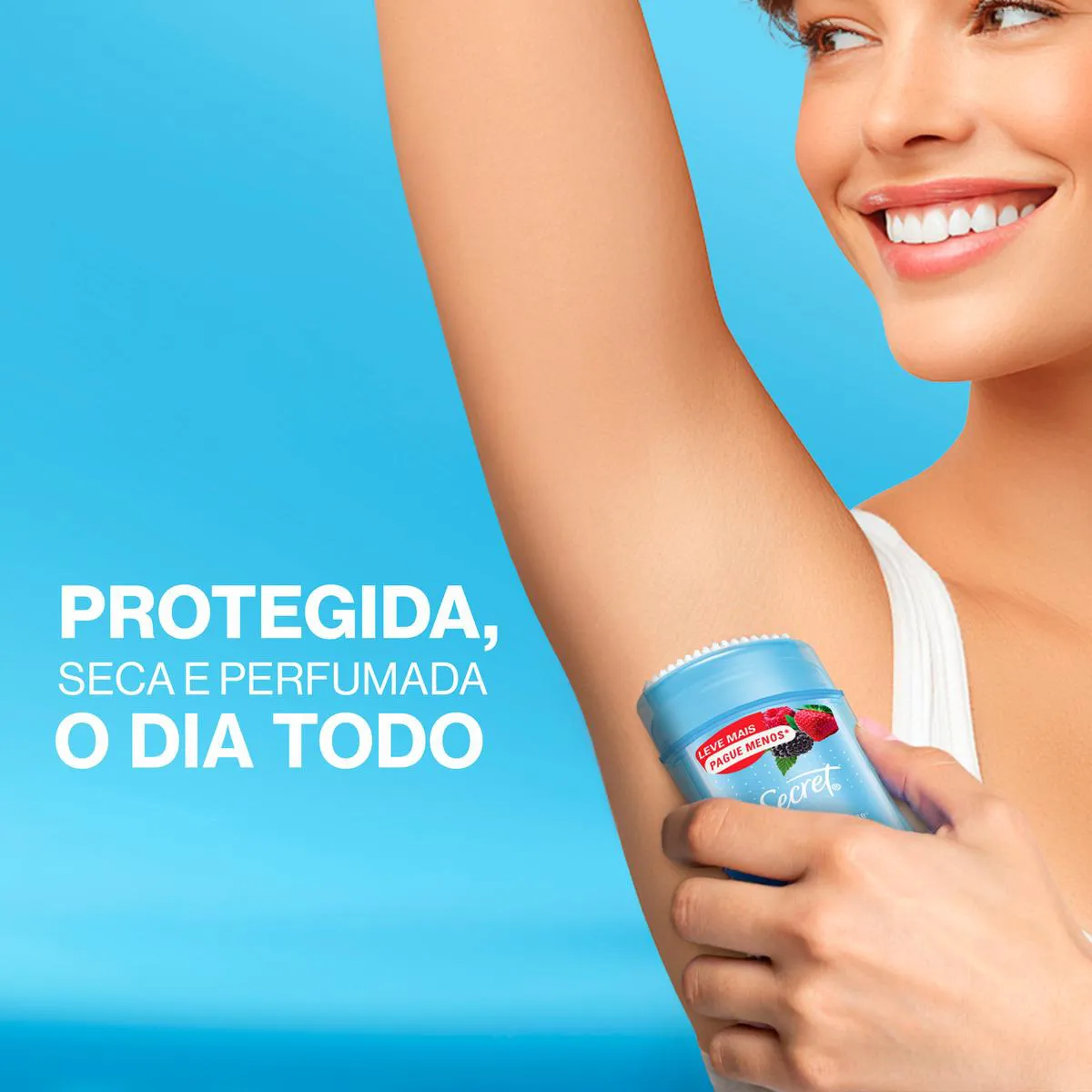 O Secret é um desodorante em gel que auxilia no combate ao suor nas axilas.