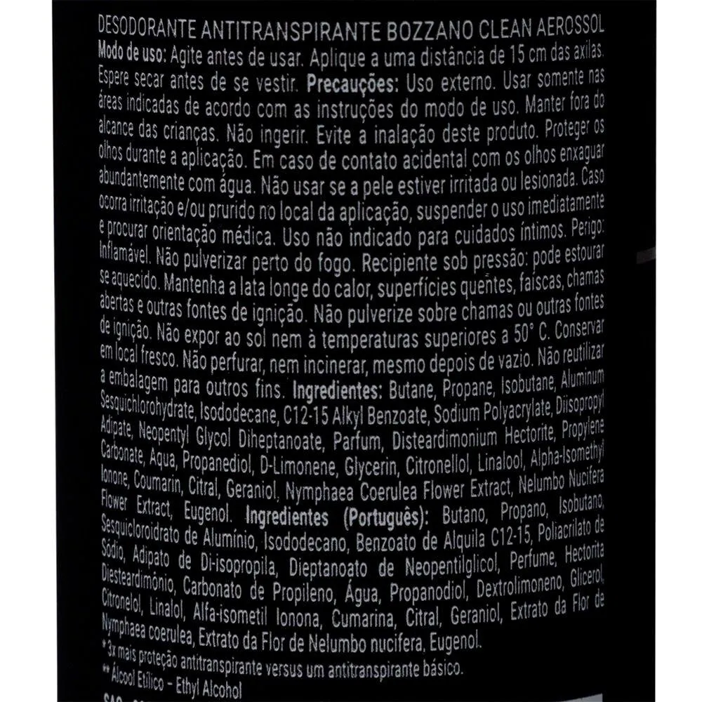 Modelo: Desodorante Bozzano Clinical Clean aerosol