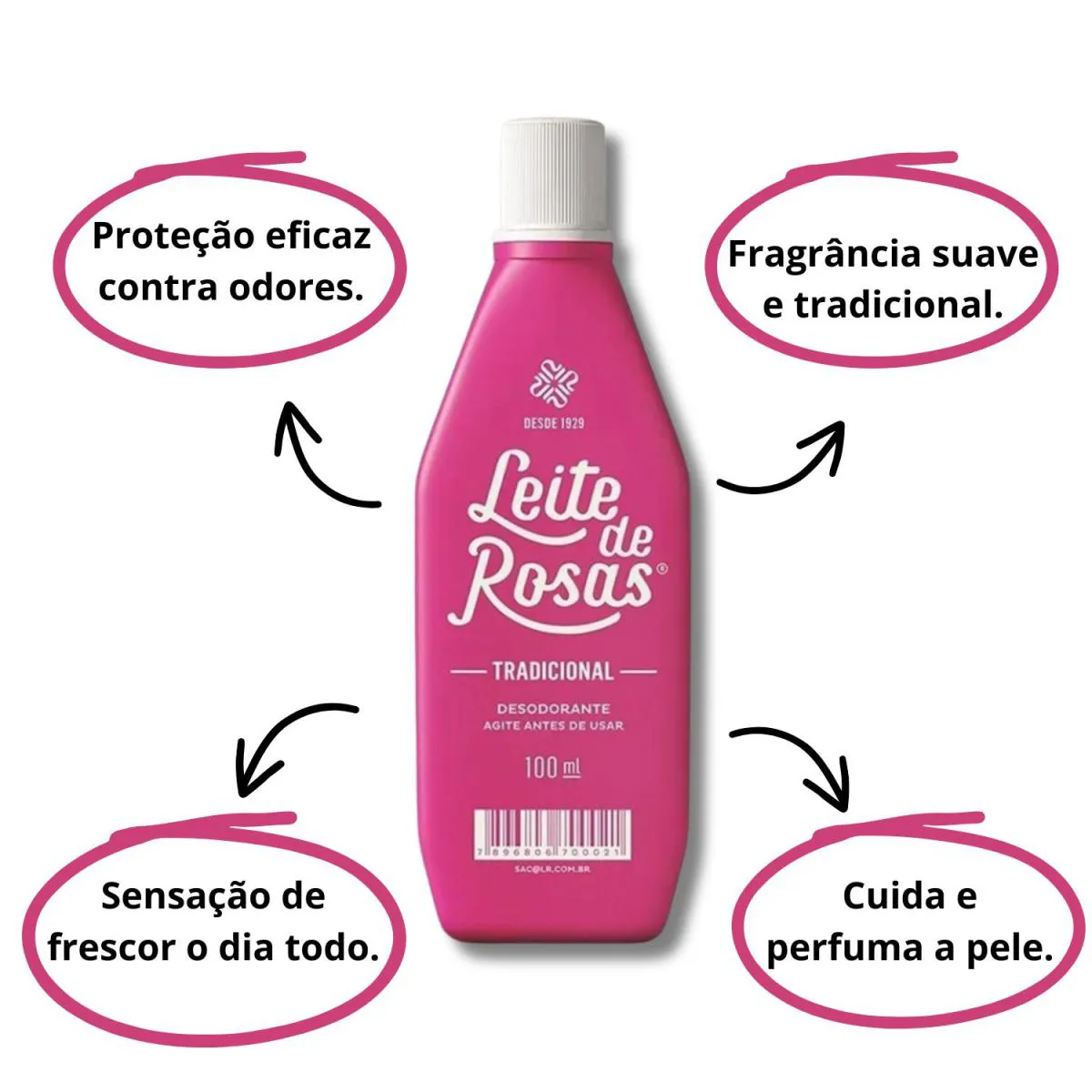 1 Desodorante Leite de Rosas Tradicional 100ml Imagens Meramente Ilustrativas. Todas as Informações Divulgadas são de Responsabilidade Exclusiva do Fabricante/fornecedor.