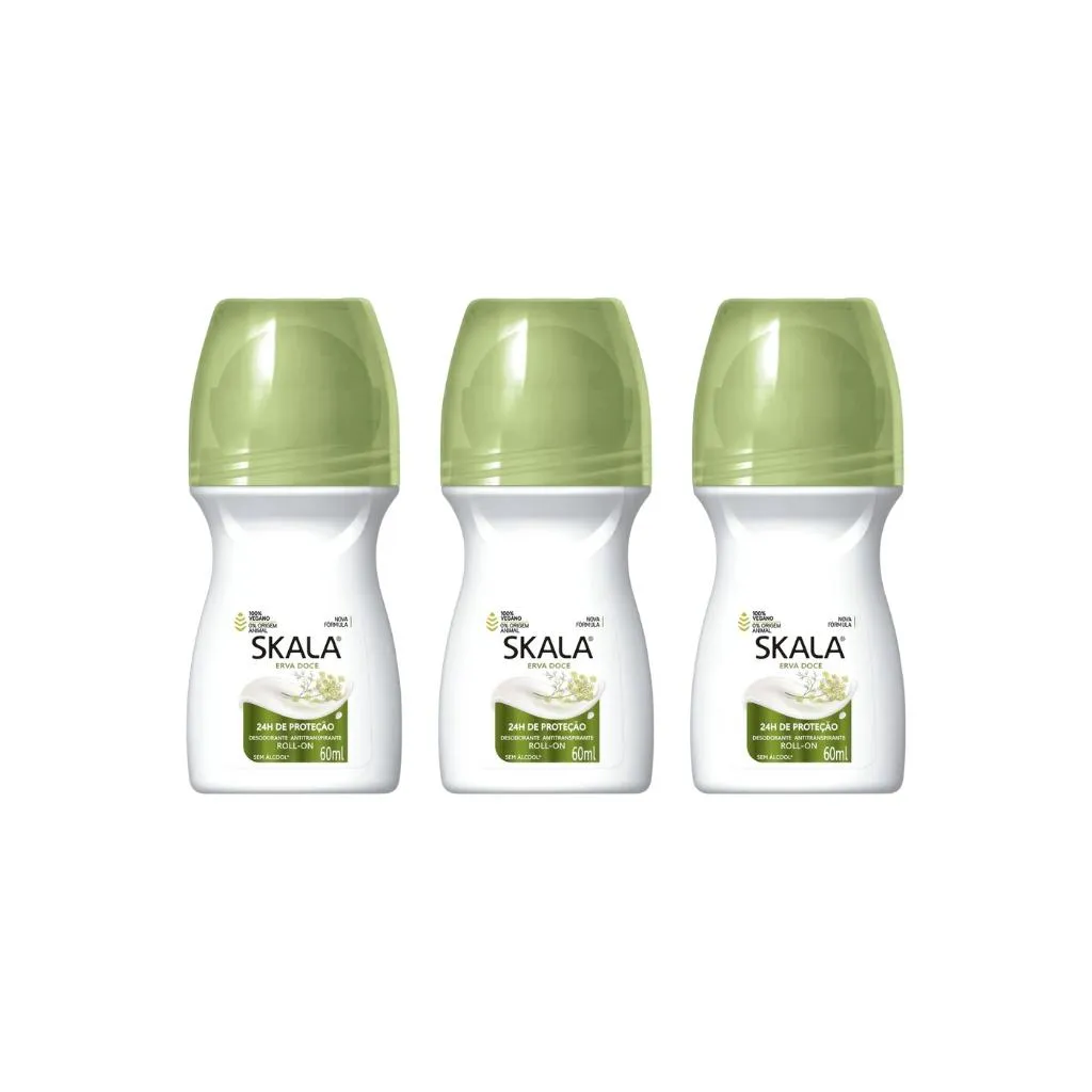 Desodorante Roll-On Skala 60Ml Feminino Erva Doce-Kit C/ 3Un