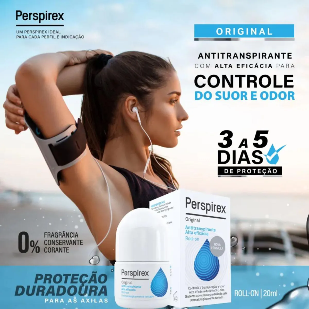 - Proteção contra suor e odor por até 5 dias.