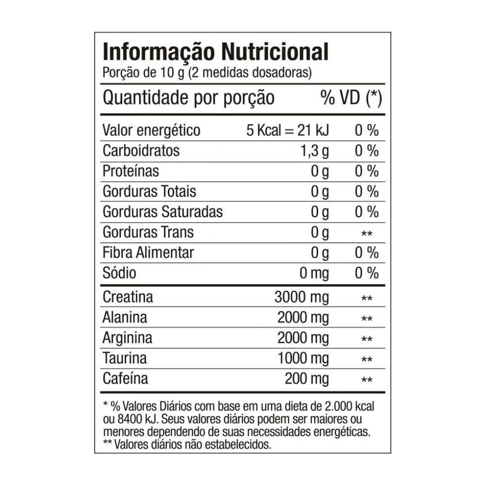 Diabo Verde Insano Pre-Workout (150g) - FTW Sports Nutriton --* SEU TREINO MUITO MAIS INSANO Deixe seu treino insano com um poderoso pré-workout com 200mg de cafeína. Em sua composição encontramos aminoácidos não essenciais como a alanina, a arginina e a taurina. Além de sua base, duas substâncias potentes: a cafeína, que auxilia no aumento da performance no desempenho de exercícios físicos de resistência, e a creatina que auxilia no aumento do desempenho físico durante exercícios repetidos de curta duração e alta intensidade. Compre com garantia de qualidade direto da fábrica. O que é o Diabo Verde Insano FTW? Cada substância escolhida para o Diabo Verde Insano FTW, foi pensada exclusivamente para o melhor desempenho das vias metabólicas do nosso organismo. Diabo Verde Insano FTW é a combinação perfeita para o seu treino! Como tomar o Diabo Verde Insano FTW? A melhor maneira de como consumir o Diabo Verde Insano FTW dependerá de cada caso. Por isso, é necessário consultar um profissional da saúde para acrescentar esse produto em sua rotina. Dessa forma irá depender da demanda do organismo de cada um. De qualquer forma em nossa embalagem recomendamos diluir 10g (2 medidas dosadoras) em 1 copo contendo 200ml de água gelada ou suco de preferência. BENEFÍCIOS:* Força e Disposição para treinos mais duradouros;* Maior vasodilatação dos vasos sanguíneos; * Acelera o crescimento muscular;* Aumento prolongado da energia;