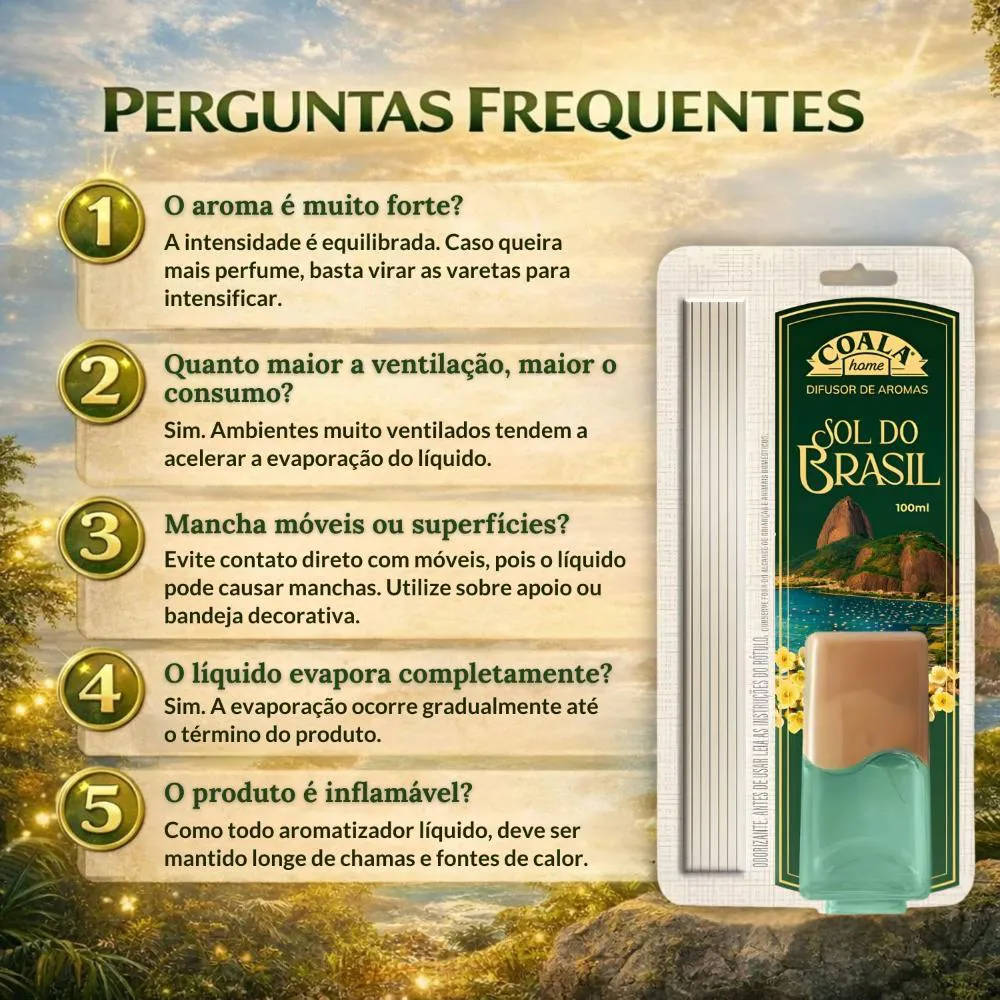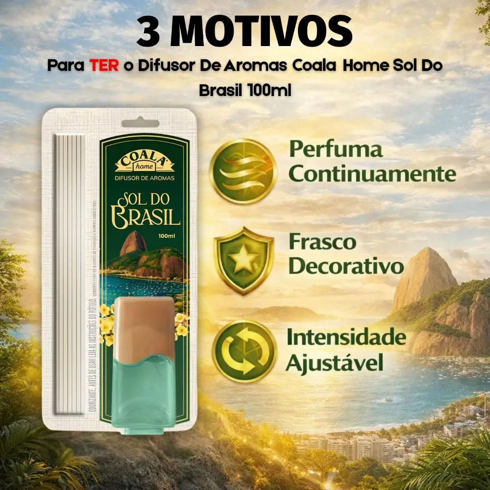 Transforme seus ambientes com o perfume envolvente do Difusor de Aromas Coala Home Sol do Brasil 100ml. Desenvolvido para proporcionar sensação de aconchego e bem-estar, ele libera a fragrância de forma contínua e equilibrada, deixando sua casa, escritório ou loja sempre perfumados com um toque marcante e agradável.Benefícios Principais