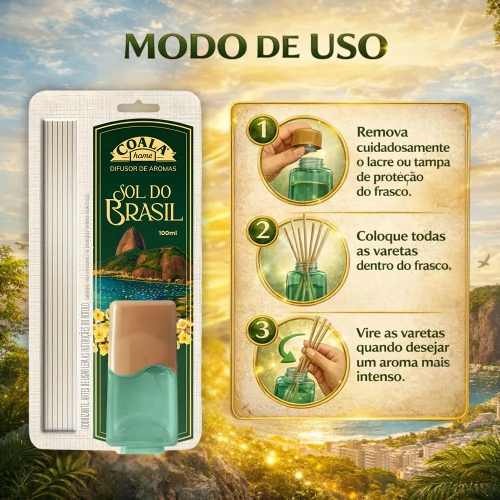 - Fragrância Sol do Brasil: aroma marcante e envolvente.