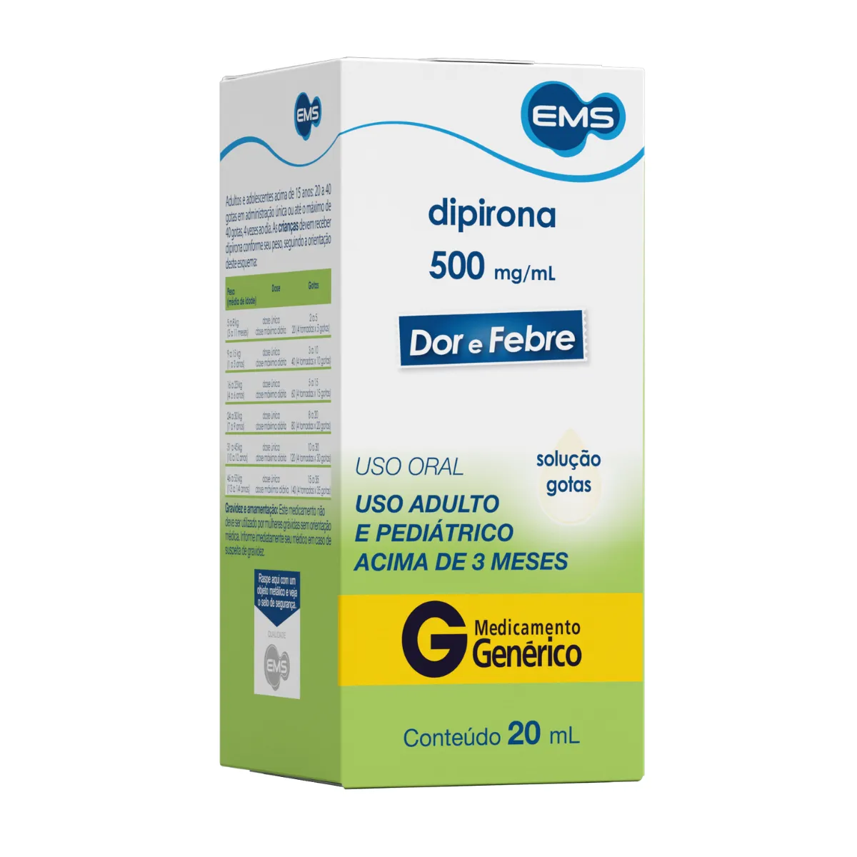 Dipirona Monoidratada 500mg/ml Solução Gotas 20ml EMS Genérico