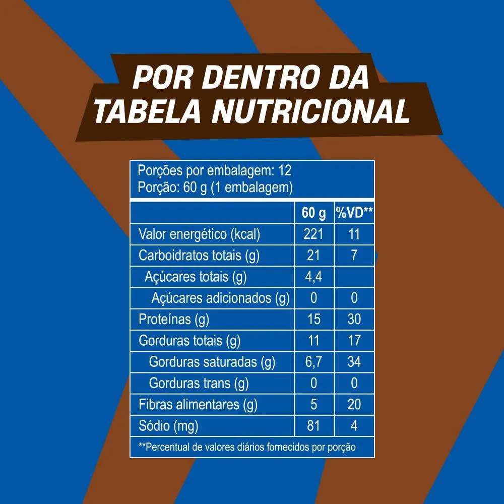 Cada unidade da nossa barra proteica contém 15g de proteína cada.
