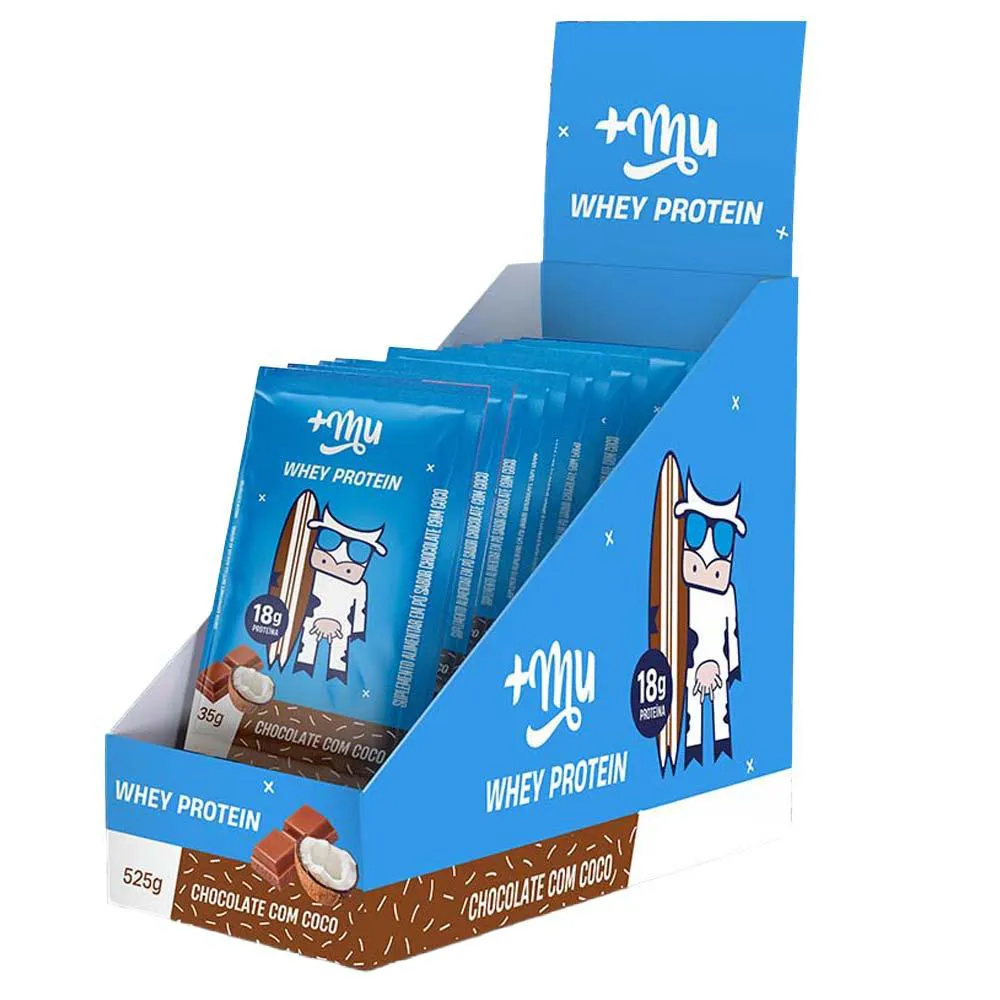 Display Whey Concentrado Mais Mu Chocolate com Coco 15 Sachês