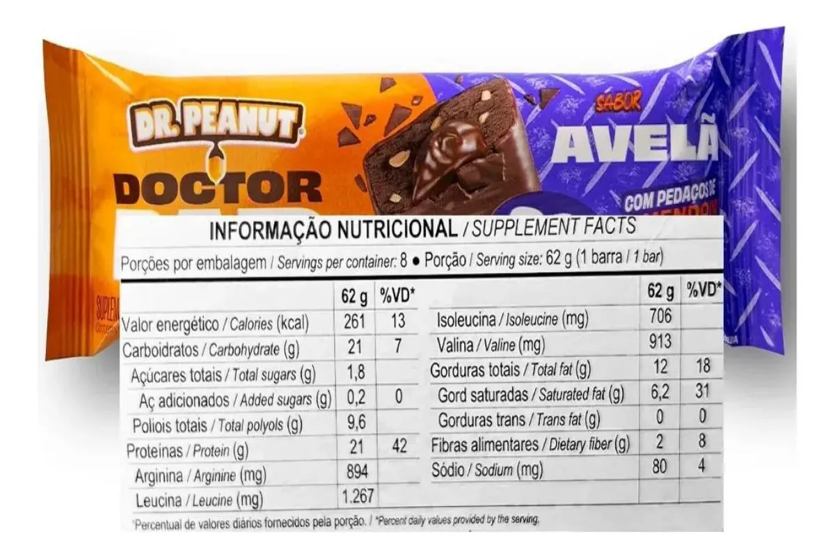 Doctor Bar Avelã Caixa 8un 21g Proteína Dr Peanut