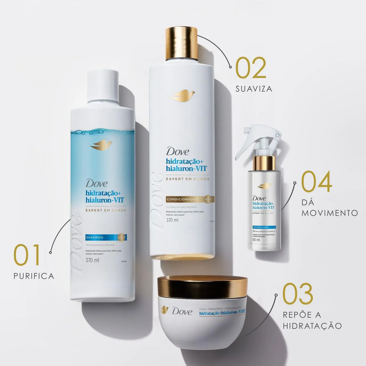 O Condicionador Dove Hidratação + Hialuron-VIT é um tratamento capilar desenvolvido para cabelos secos e com frizz, formulado com serum hialurônico de alta performance.