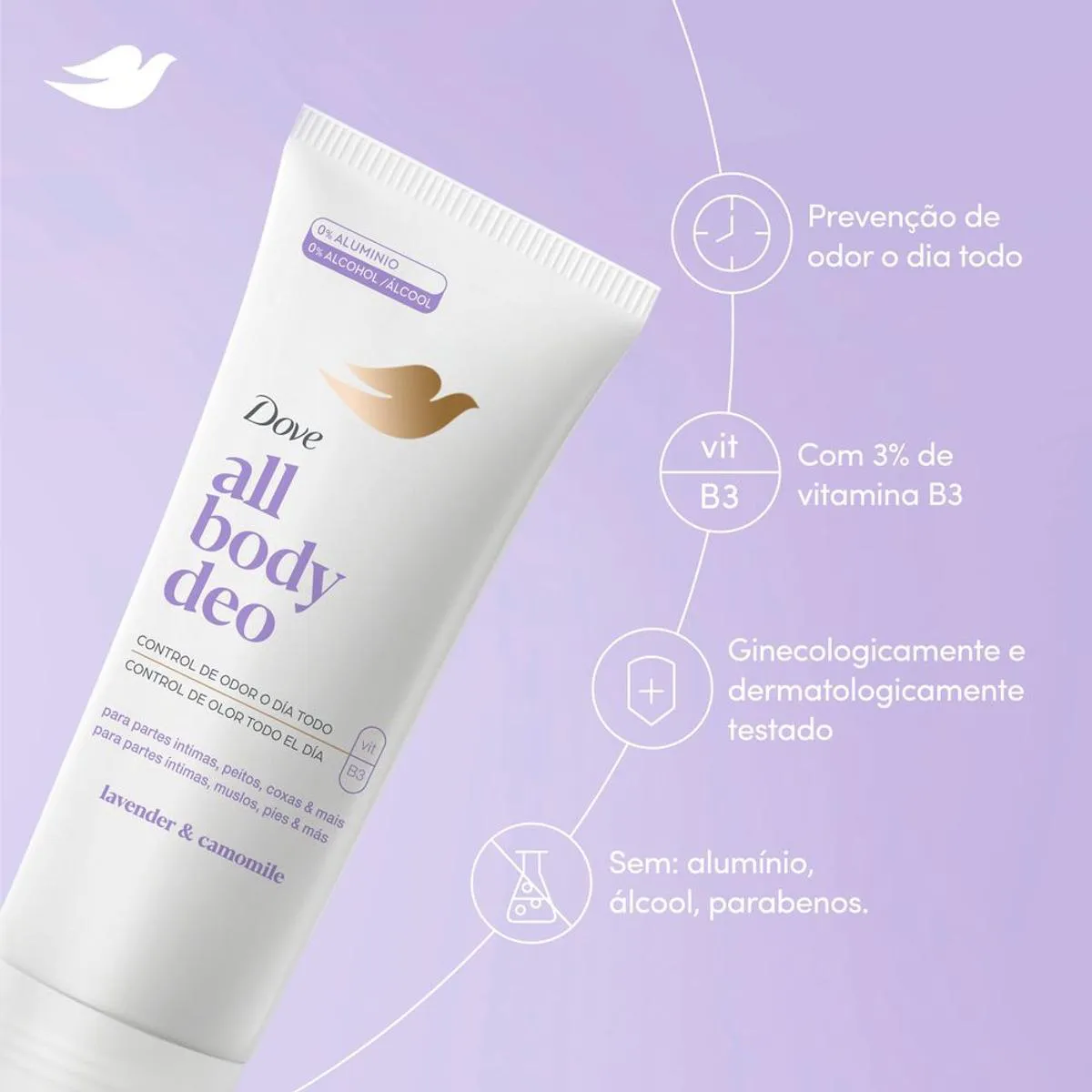 O Desodorante Creme Dove All Body Deo é um desodorante corporal com textura rica e hidratante, desenvolvido para proporcionar proteção contra odores e promover suavidade à pele.