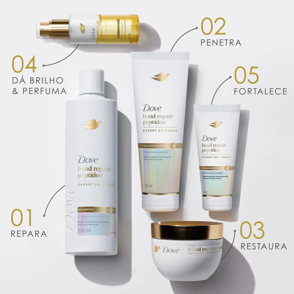 O Óleo + Sérum Bifásico Finalizador Dove Bond Repair proporciona uma reparação intensa, que nutre e realça a saúde dos fios. Sua fórmula poderosa reduz as pontas duplas e controla o frizz por 72 horas, garantindo maciez e brilho extra.