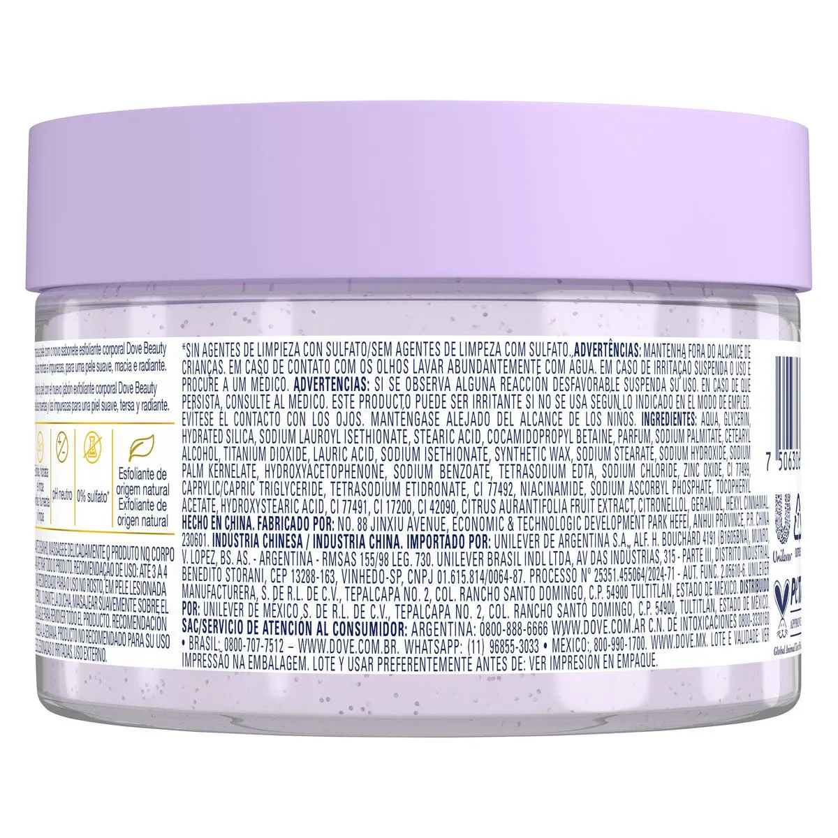 O Dove Beauty Scrub é um sabonete esfoliante corporal 3 em 1, que limpa, esfolia e hidrata a pele em um único produto. Com 1/4 de creme hidratante em sua fórmula, garante uma pele macia e radiante e oferece uma experiência premium durante o banho.
