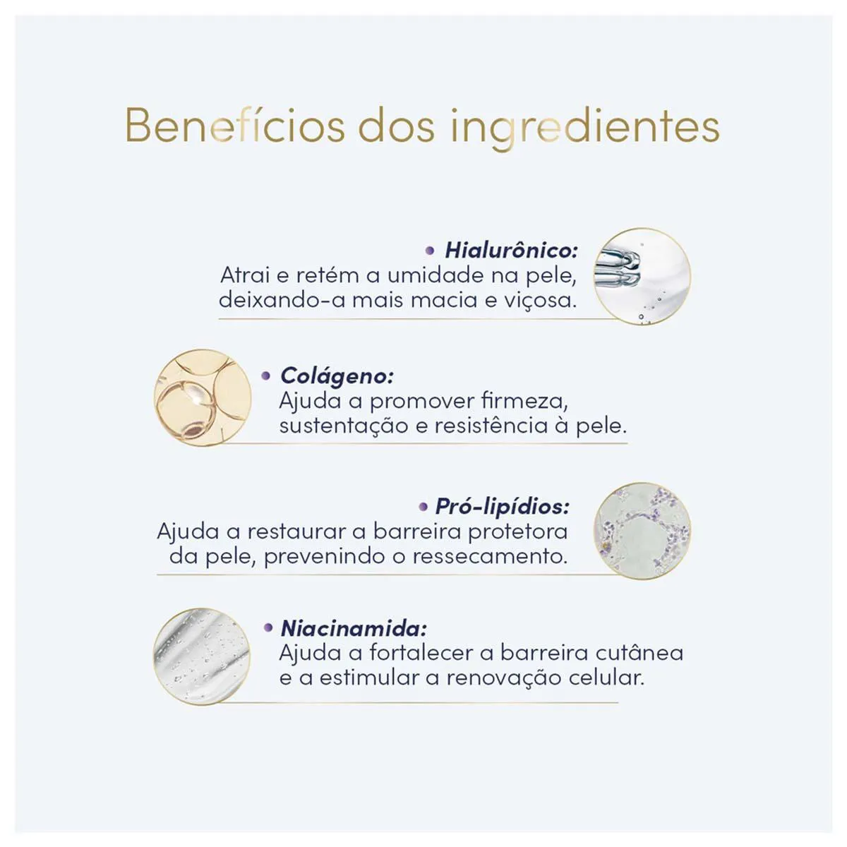 Desenvolvido em parceria com dermatologistas e testado em mulheres reais, sua fórmula possui uma tecnologia exclusiva e avançada que hidrata profundamente e atua em sinergia com a pele, ajudando a restaurar sua maciez e luminosidade de dentro para fora.