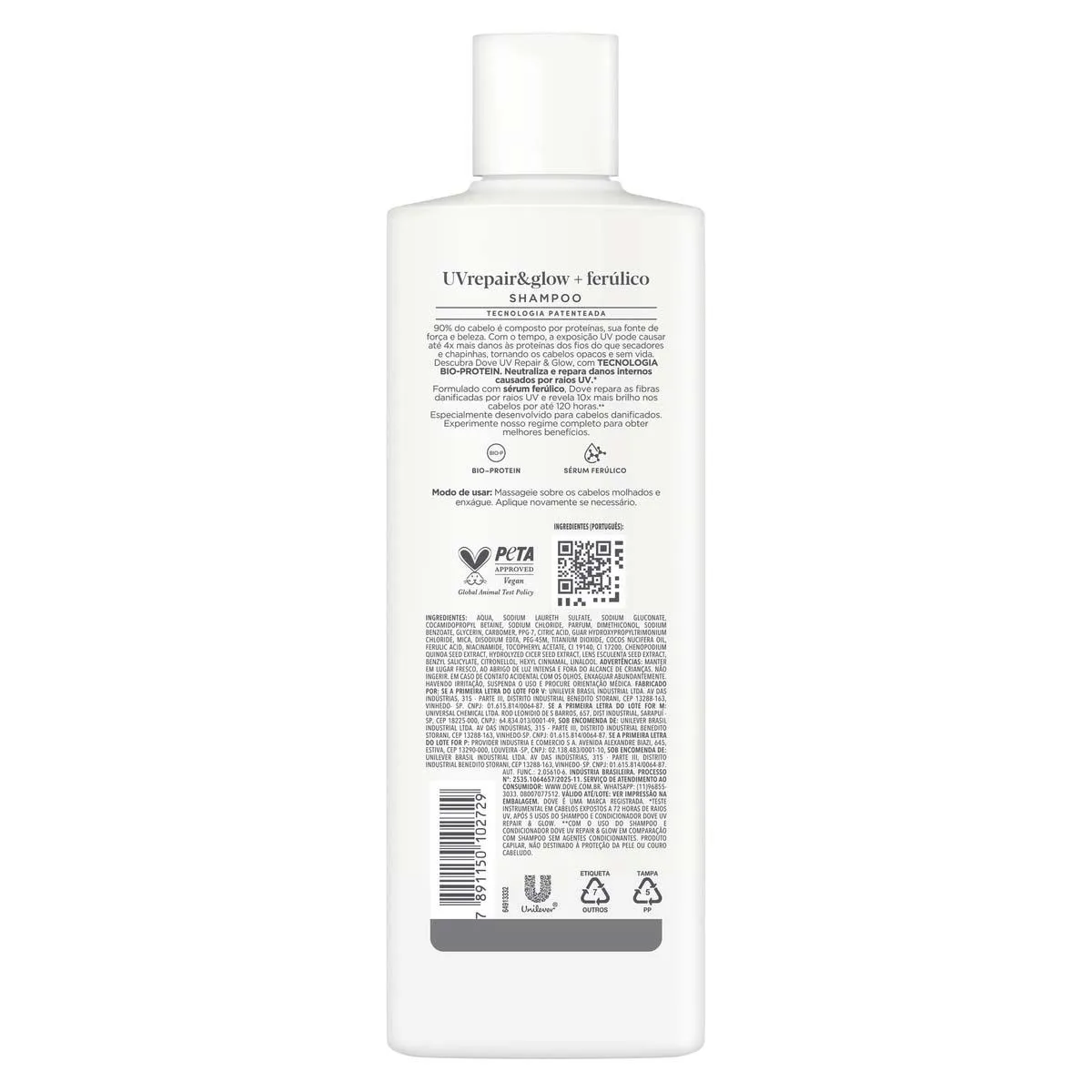 O Shampoo Dove UV Repair & Glow + Ferúlico foi desenvolvido para reverter os danos causados pelos raios UV e proteger os cabelos contra os efeitos nocivos do sol por até 70 horas. Sua fórmula combina ação antioxidante e a tecnologia UV Ferúlico, que transforma cabelos opacos, foscos e sem vida, deixando-os com até 10 vezes mais brilho. Ideal para quem busca proteção prolongada, brilho intenso e fortalecimento dos fios.