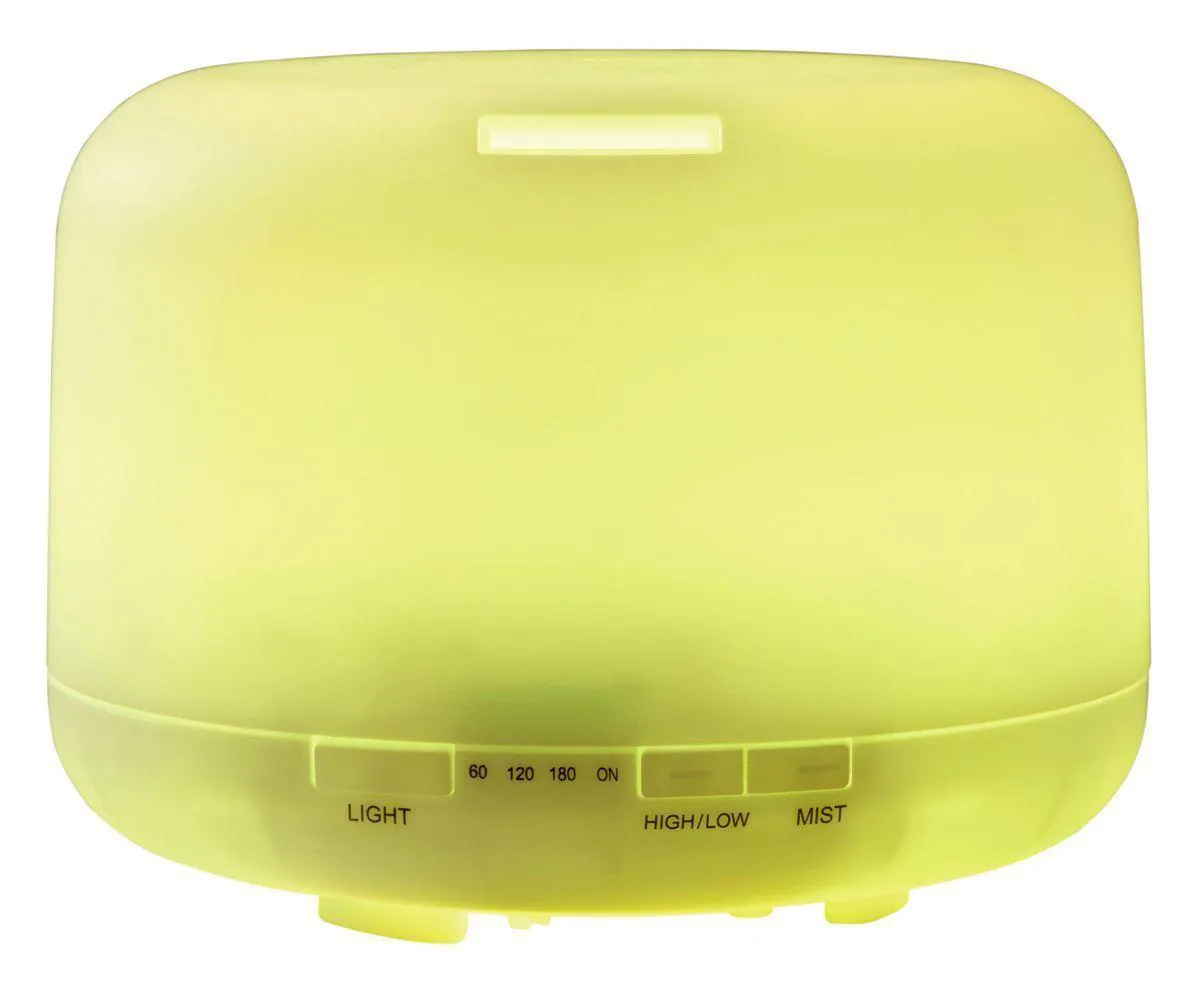 - Luminária: A lâmpada do difusor ilumina suavemente o vapor e o ambiente.