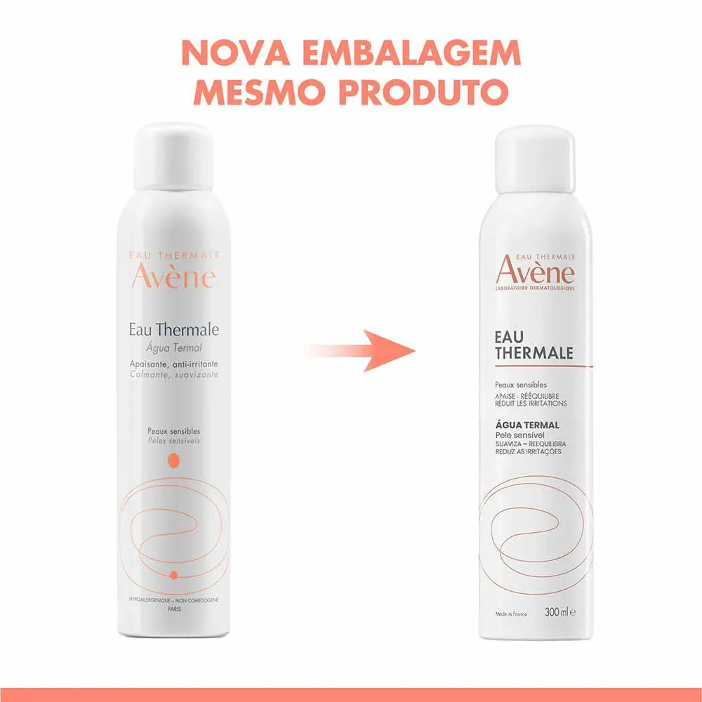 Eau Thermale Avène - Água Termal O que é e para que serve? Presente em todas as fórmulas da marca, à Água Termal Avène é um ativo exclusivo e representa o DNA da marca Avène. Rica em princípios ativos ideais para peles sensíveis, alérgicas ou irritadas ela garante a redução de 30% da sensibilidade da pele em cinco minutos graças às suas propriedades calmante, anti-oxidante e anti-irritante. Indicada para todos os tipos de pele, inclusive peles sensíveis, hipersensíveis, alérgicas e irritadas. Pode ser utilizado na pele do bebê. Pode ser utilizada em peles com eczema, psoríase, queimaduras, cicatrizes, ictiose, rosácea, acne, pós-peeling e pós-laser. Quais os benefícios do Eau Thermale Avène - Água Termal ? - Acalma a pele irritada (pode ser usada após o barbear, procedimentos dermatológicos, etc) - Possui propriedades antioxidantes que agem na causa do envelhecimento precoce - Suaviza a ardência da pele pós sol - Possui PH neutro e não altera o PH cutâneo - Extraída diretamente da fonte de águas termais - Resultado imediato Dados químicos revelam a pureza da Água Termal Avène: - Fraca mineralização : resíduo seco 266 mg/litro. - Perfil bicabornatado em cálcio e magnésio. - Relação cálcio/magnésio igual a 2. - Riqueza em silicatos : 10,6 mg/litro. - Grande riqueza em oligoelementos. - pH neutro : 7,5. Modo de uso: 1. Borrifada longa seguida de uma leve massagem com a ponta dos dedos para aumentar a absorção da Água Termal Avène. 2. Deixe-a ser absorvida pela pele, isso acontece com cerca de 2 a 3 minutos.