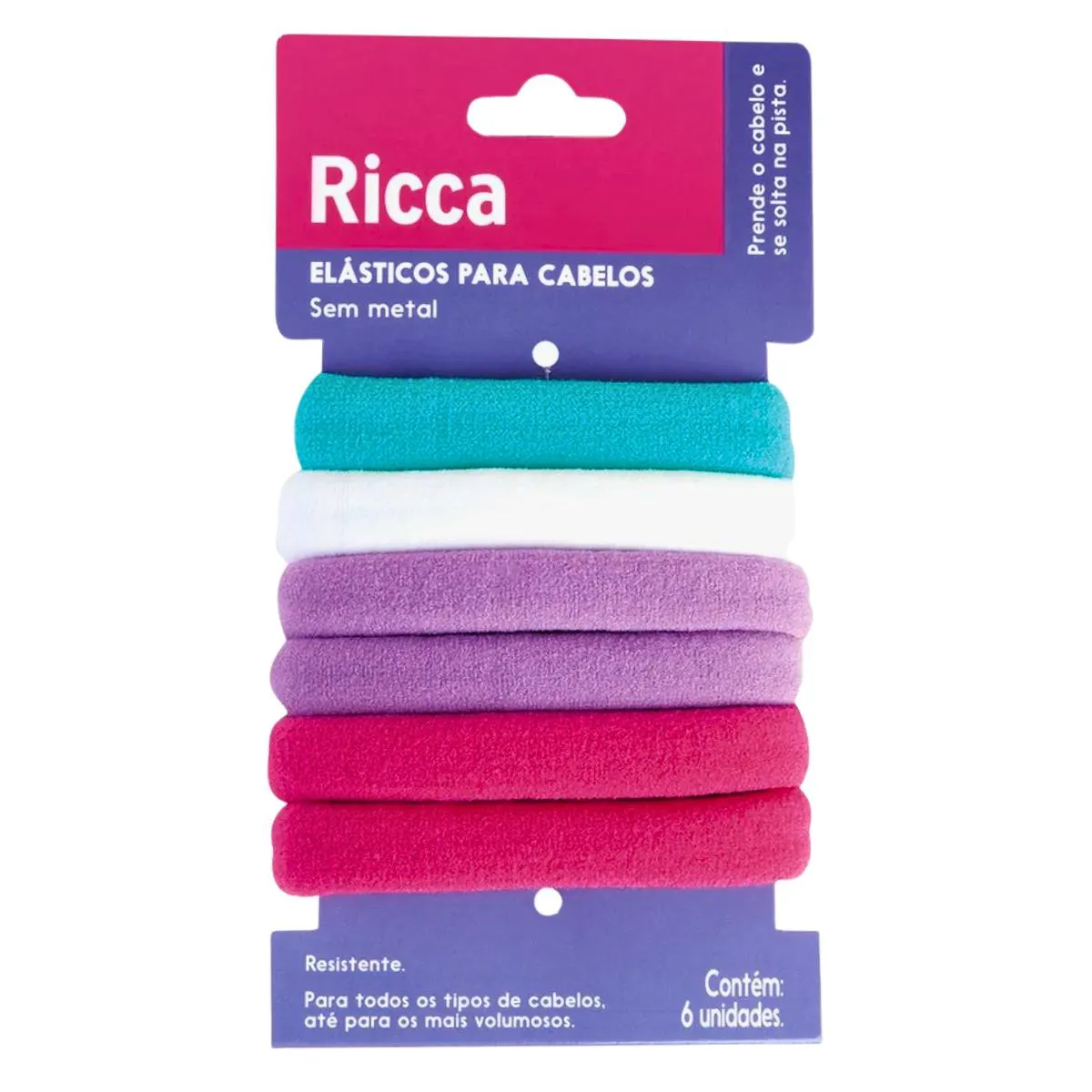 - Transforme seus penteados com o Elástico Grosso 6 Un Summer Ricca, especialmente projetado para cabelos com volume. Com cores vibrantes como Branco, Lilás, Verde Turquesa e Rosa, este conjunto de 6 unidades oferece firmeza, estilo e um toque de verão para seu visual, sem comprometer a saúde dos fios.