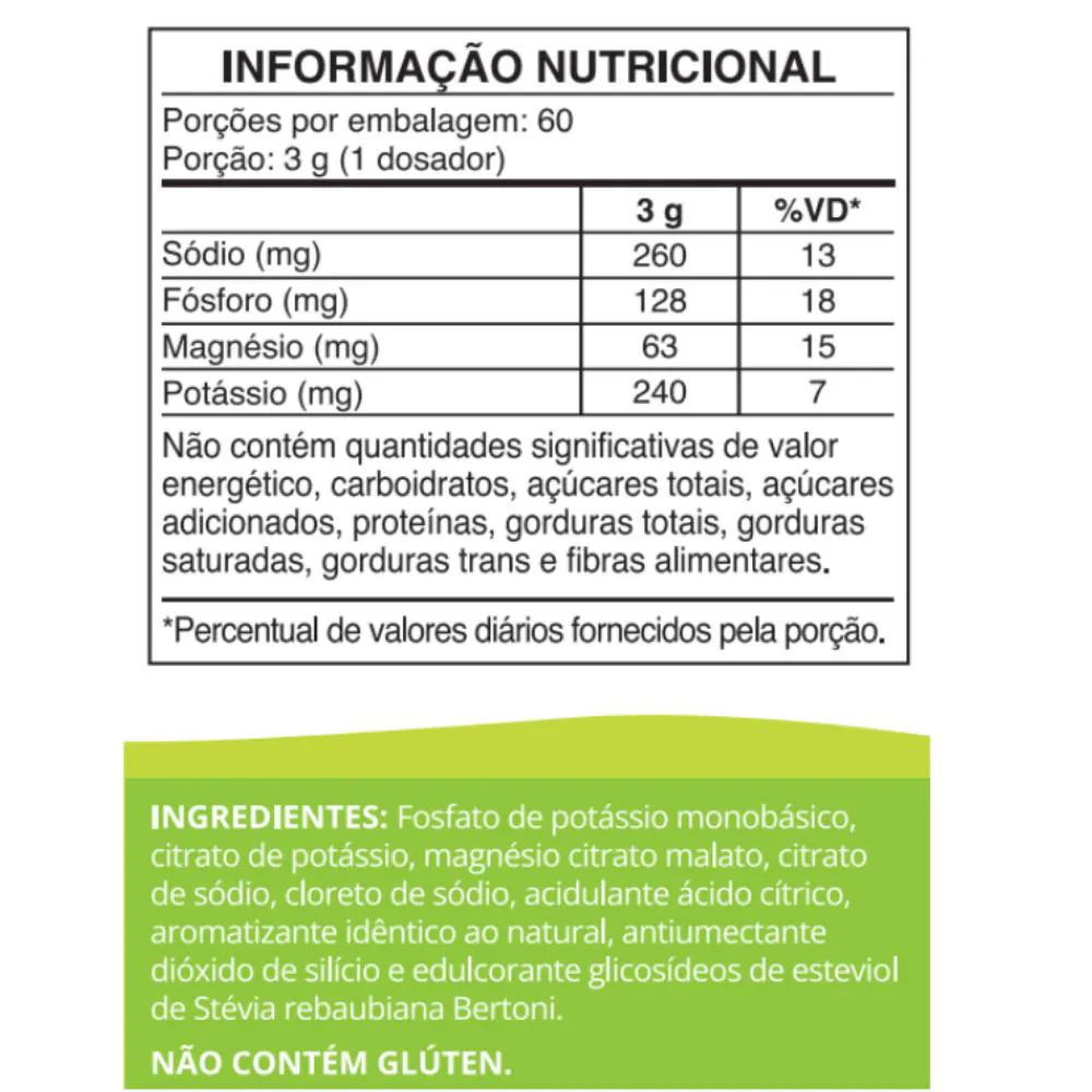 Eletrólitos em Pó é um suplemento que auxilia no equilíbrio dos sais minerais essenciais para o organismo. Perfeito para repor sódio, potássio, fósforo e magnésio, especialmente em casos de desidratação, exercícios e situações de suor intenso – e sem adição de carboidratos, ou seja, com baixo valor calórico.