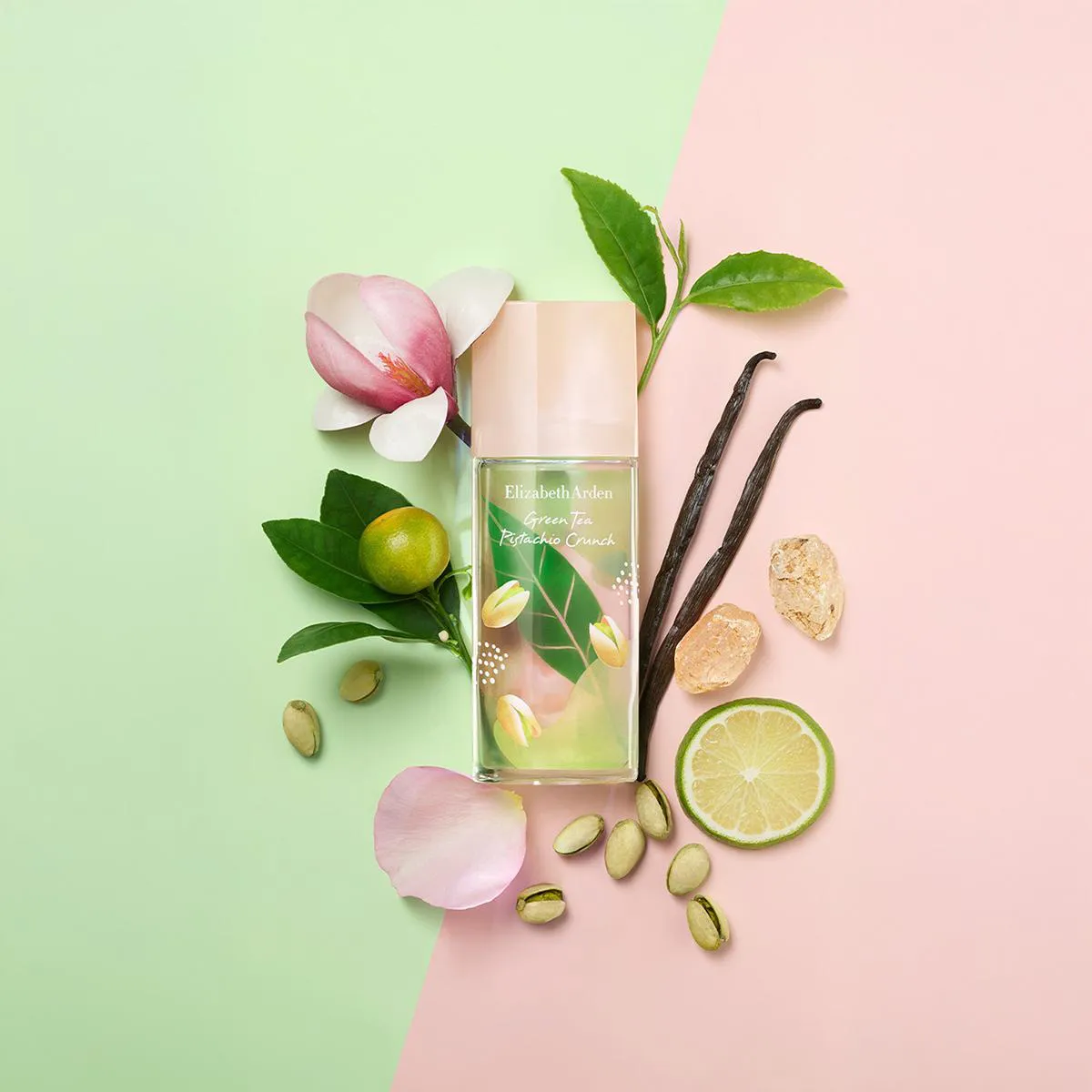 Elizabeth Arden Green Tea Pistachio Crunch - Gourmand Fresco e Leve Com essência gourmand leve e sofisticada, Green Tea Pistachio Crunch combina o frescor do chá verde com a cremosidade do pistache e o aconchego da baunilha. Uma fragrância irresistível que equilibra leveza, doçura e elegância em cada borrifada.