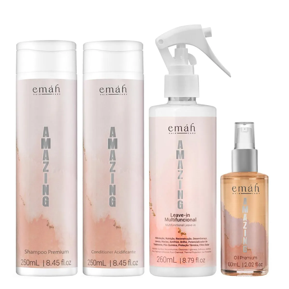 EMáH AMAZING - SHAMPOO 250ML + CONDICIONADOR 250ML + LEAVE-IN MULTIFUNCIONAL 260ML + ÓLEO PREMIUM 60ML