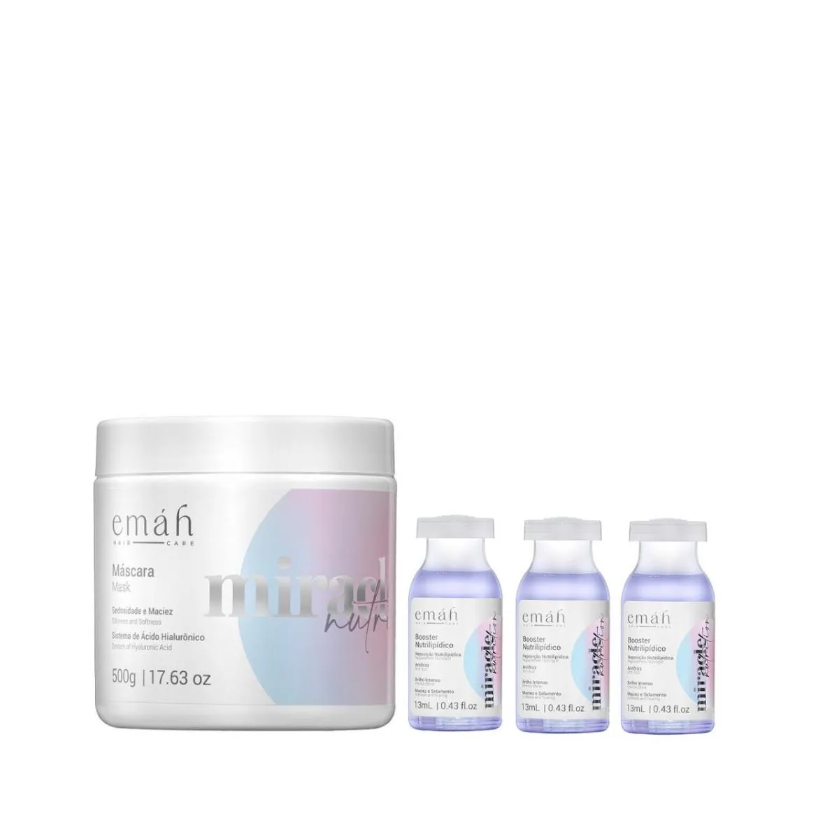Kit Emáh Miracle Nutrition: Máscara 500g + 3x Ampola 13ml - Nutrição Profunda e Resgate Capilar