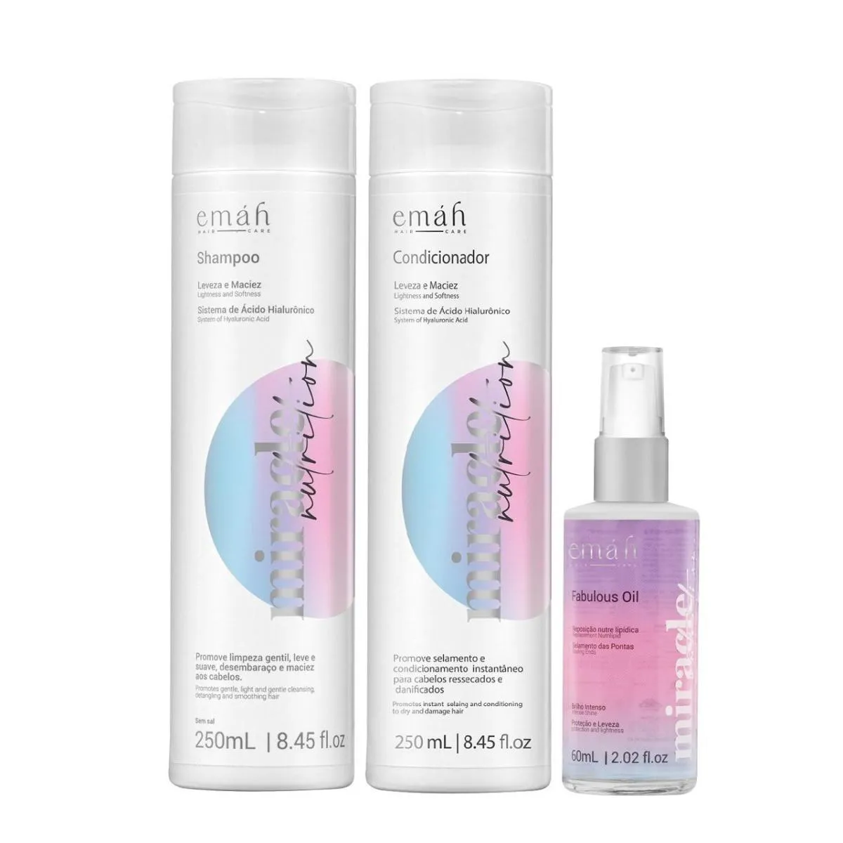Kit Essencial Emáh Miracle Nutrition: shampoo 250ml + condicionador 250ml + Óleo Restaurador 60ml