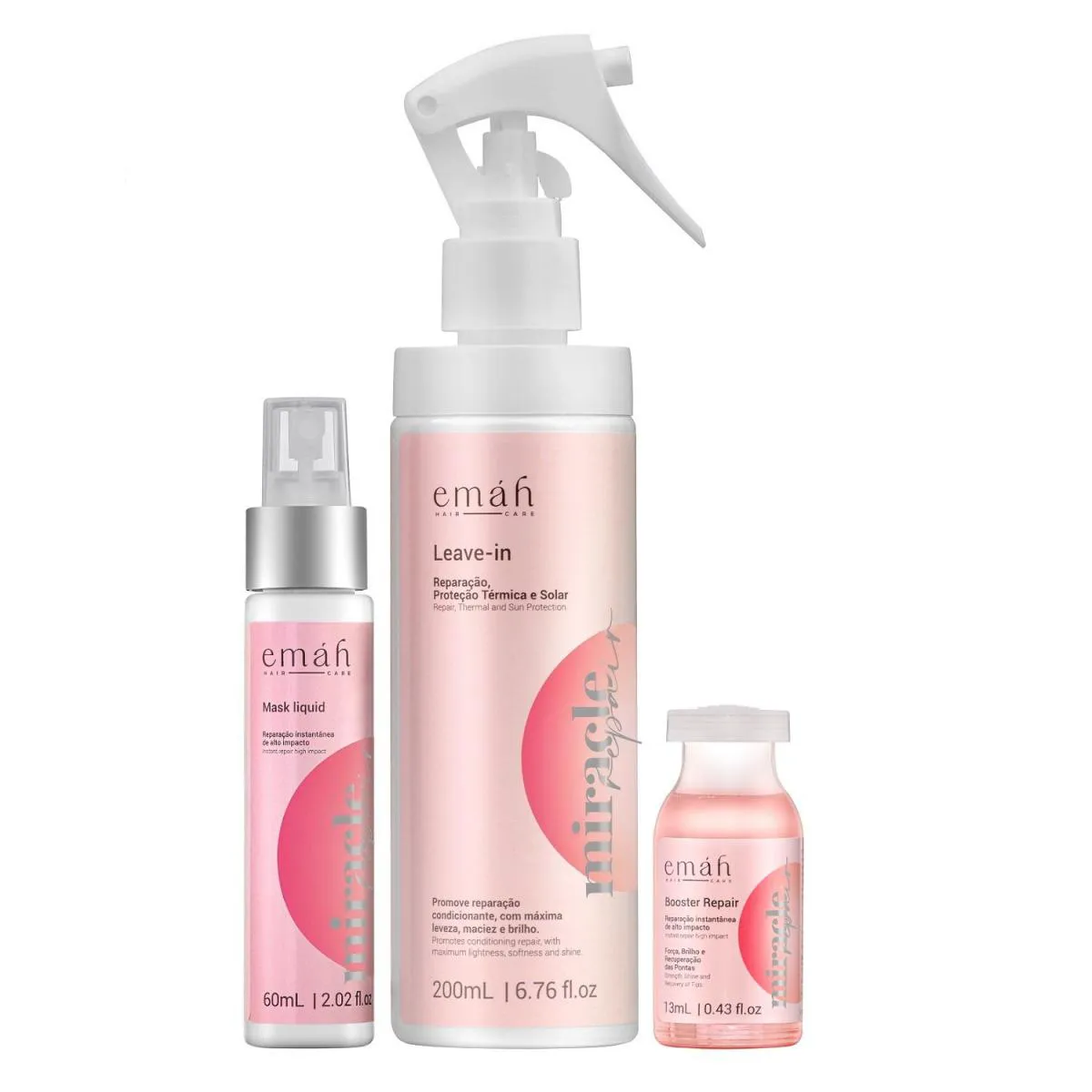 EMáH MIRACLE REPAIR - LEAVE IN 200ML + MáSCARA LíQUIDA 60ML + AMPOLA 13ML
