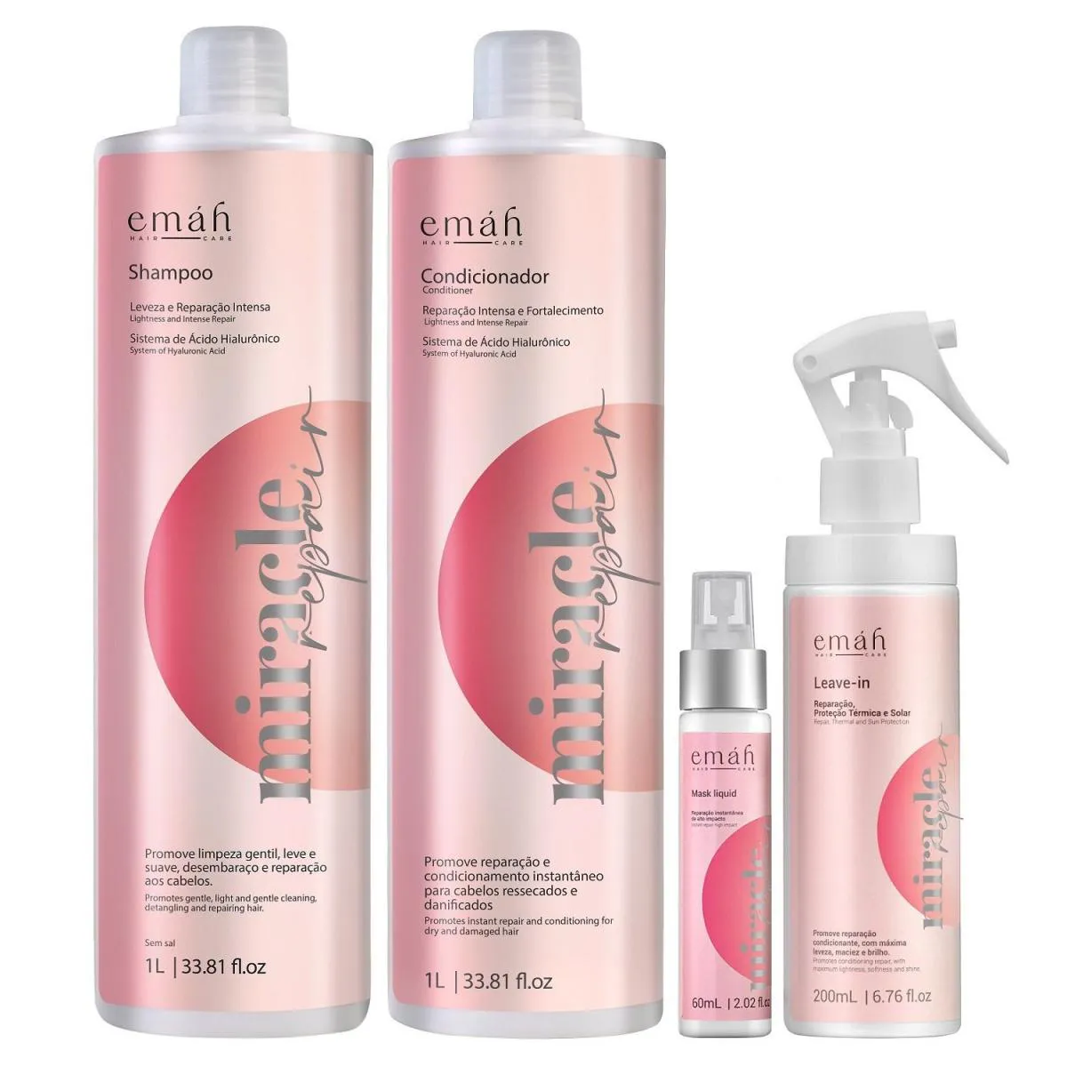 EMáH MIRACLE REPAIR - SHAMPOO 1L + CONDICIONADOR 1L + MáSCARA LíQUIDA 60ML + LEAVE IN 200ML