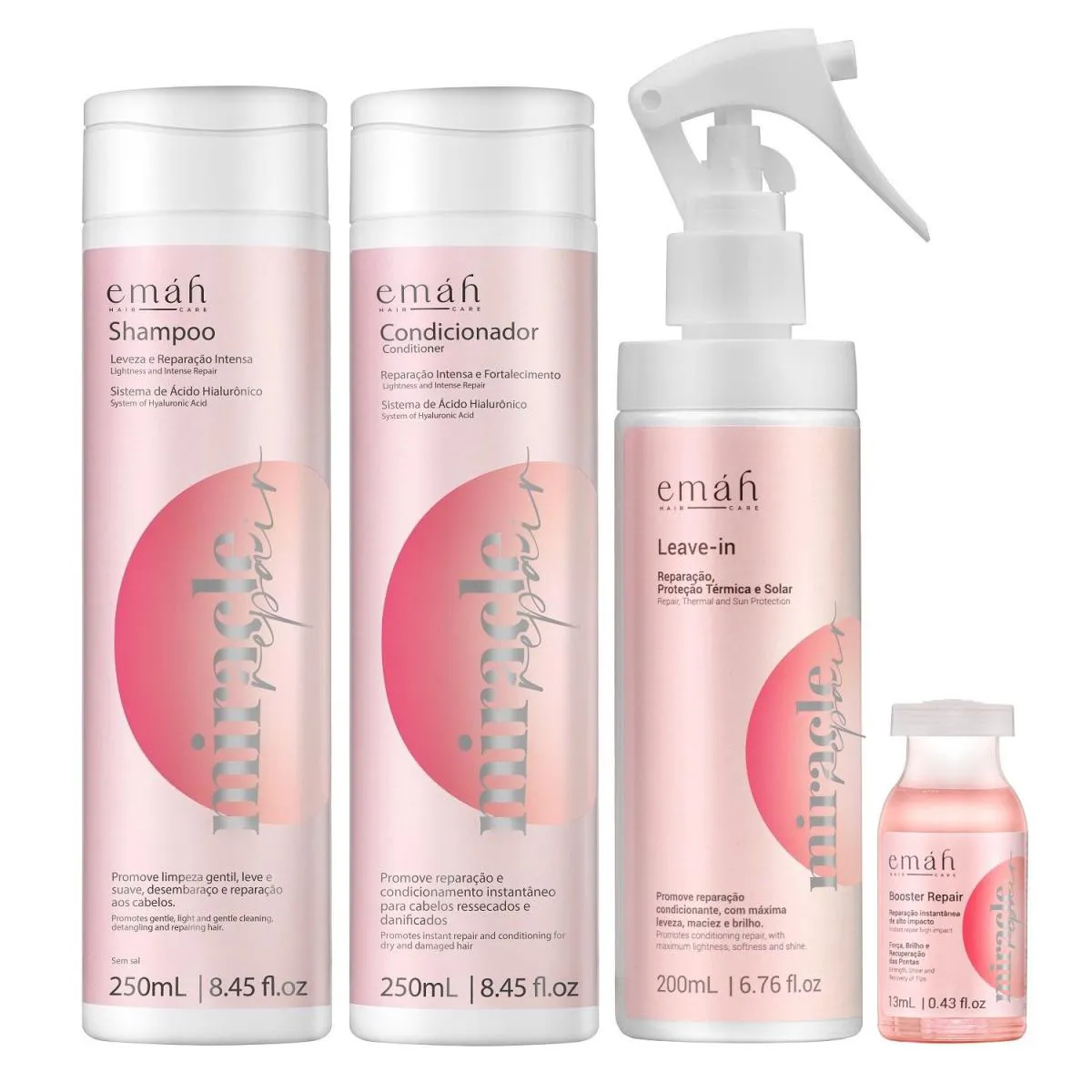 EMáH MIRACLE REPAIR - SHAMPOO 250ML + CONDICIONADOR 250ML + LEAVE IN 200ML + AMPOLA 13ML