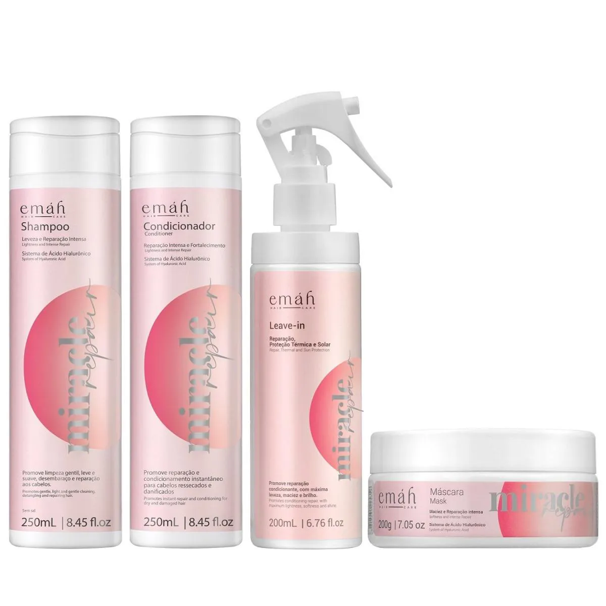 EMáH MIRACLE REPAIR - SHAMPOO 250ML + CONDICIONADOR 250ML + LEAVE IN 200ML + MáSCARA 200ML