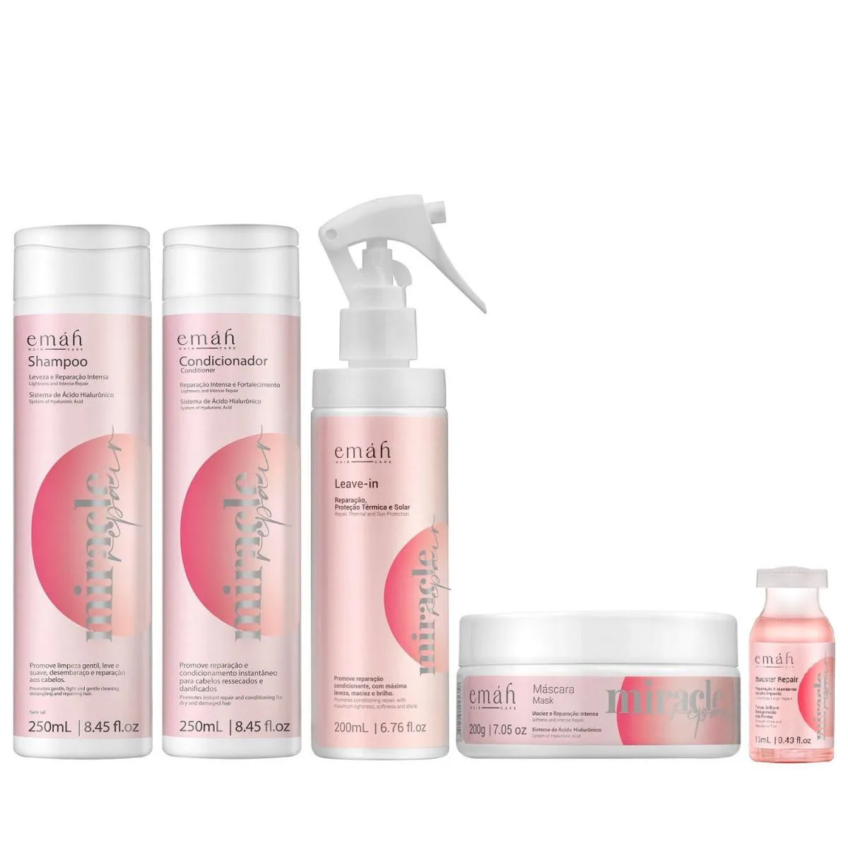 EMáH MIRACLE REPAIR - SHAMPOO 250ML + CONDICIONADOR 250ML + LEAVE IN 200ML + MáSCARA 200ML + AMPOLA 13ML