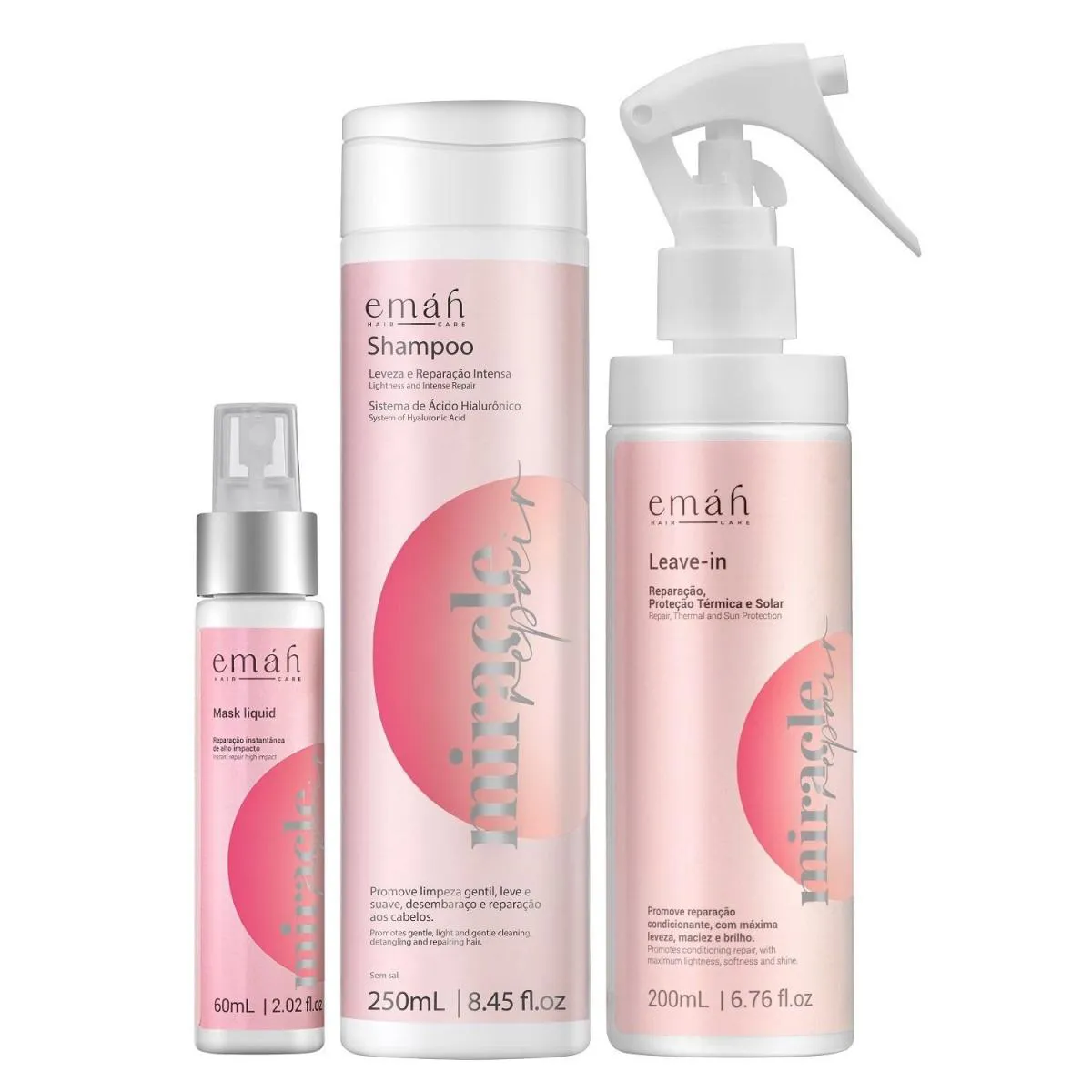 EMáH MIRACLE REPAIR - SHAMPOO 250ML + LEAVE IN 200ML + MáSCARA LíQUIDA 60ML