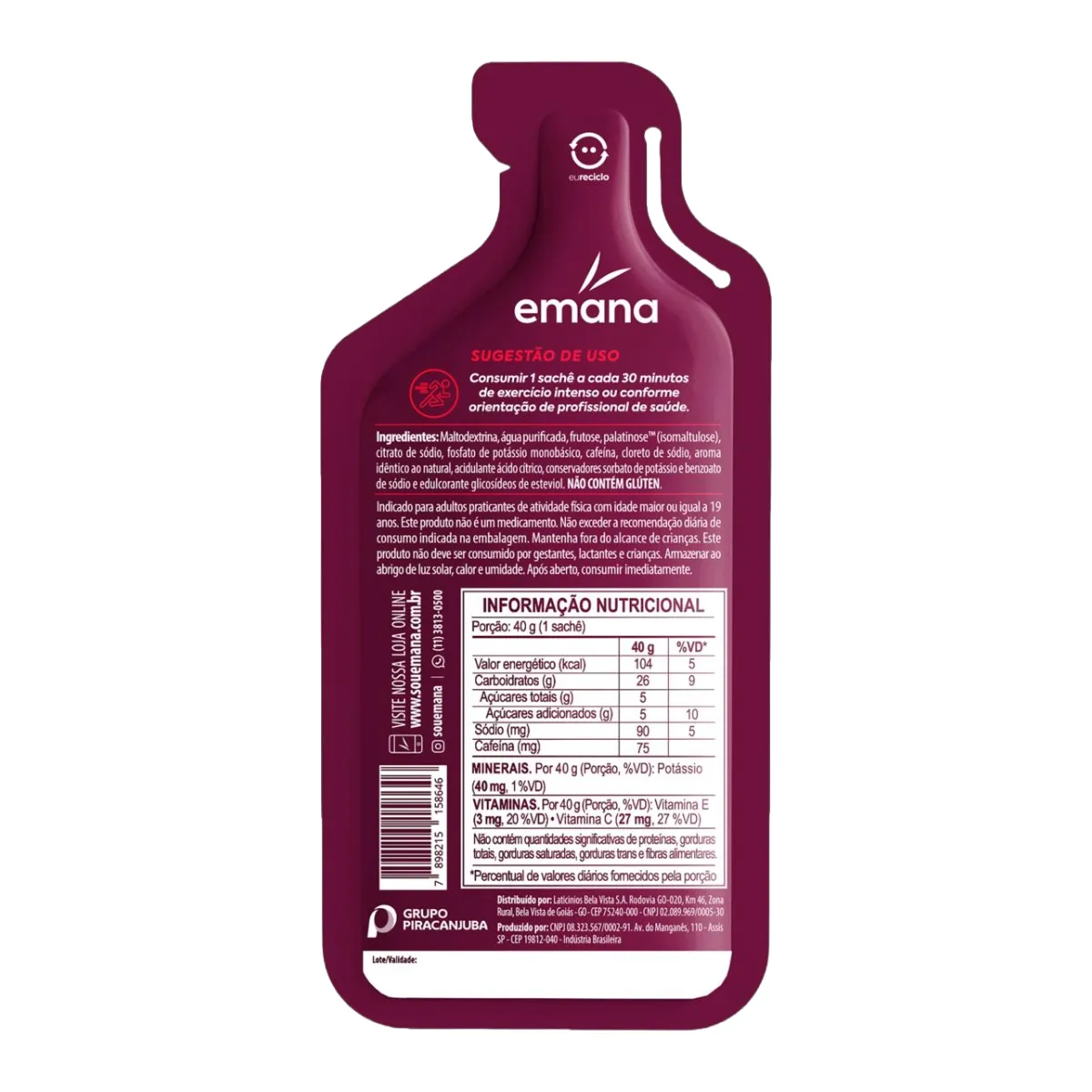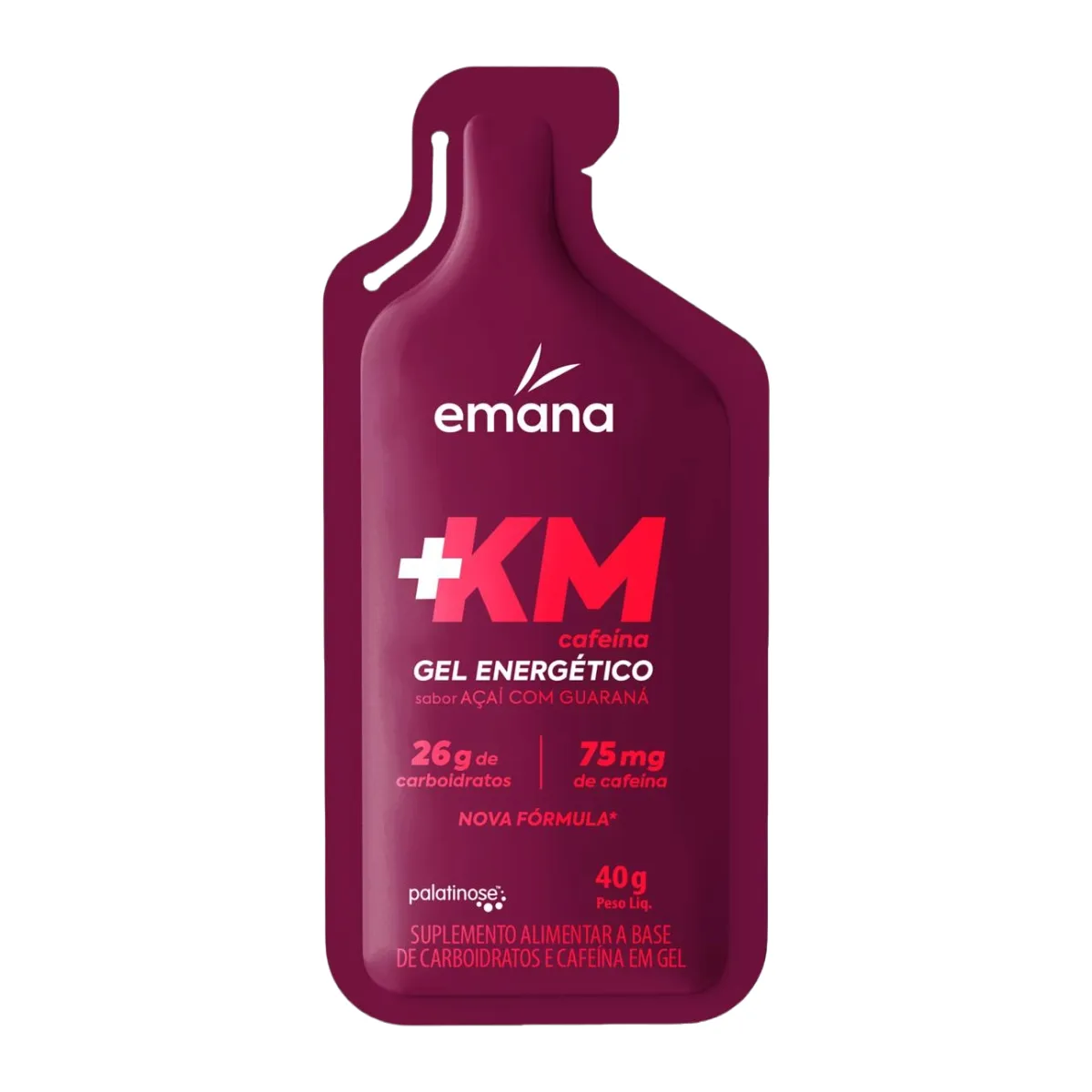 O Emana + KM Açaí com Guaraná é um gel energético formulado para fornecer energia rápida e sustentada durante a prática esportiva. Seu complexo de carboidratos — composto por maltodextrina, frutose e palatinose — é de absorção gradativa, garantindo liberação contínua de energia. O produto também repõe minerais perdidos no suor e fornece vitaminas C e E, além de eletrólitos, ajudando a manter o desempenho e a resistência durante exercícios intensos.