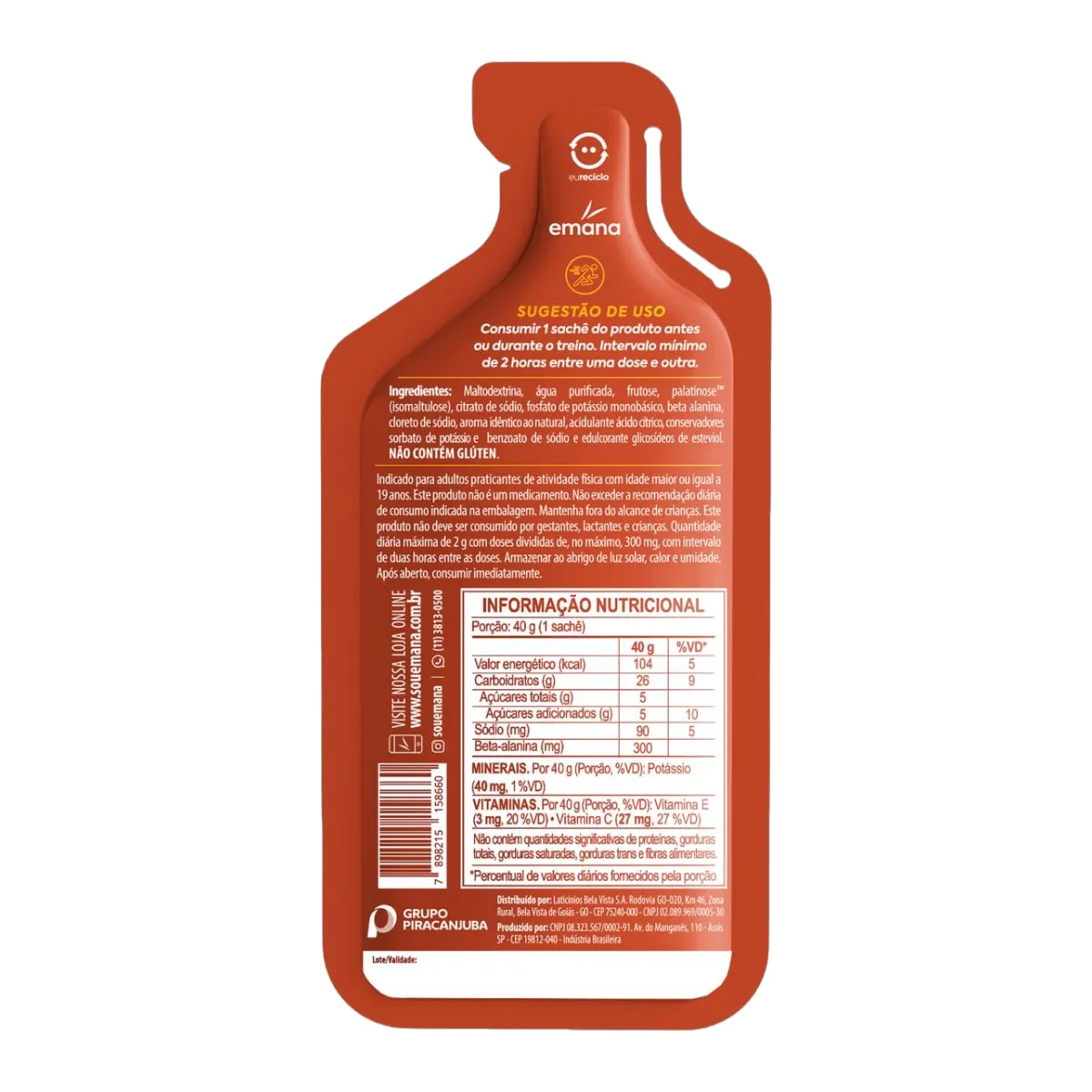Suplemento Emana Gel Energético +Km Beta-Alanina Caramelo Salgado 40g