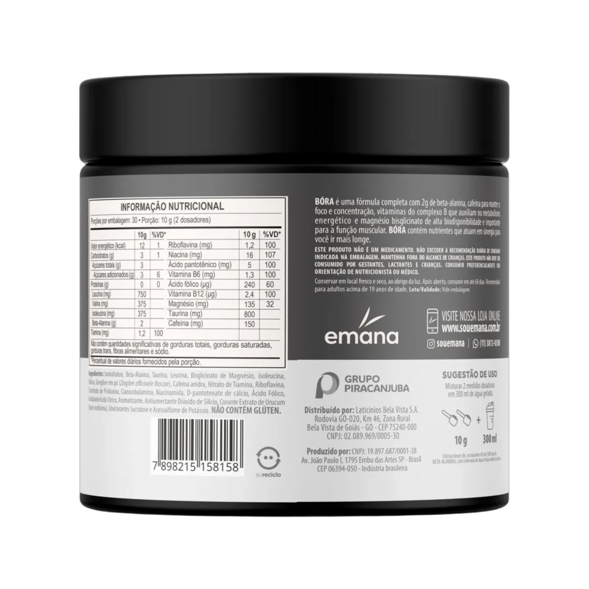 - Contém beta-alanina, BCAAs, taurina e vitaminas do complexo B.