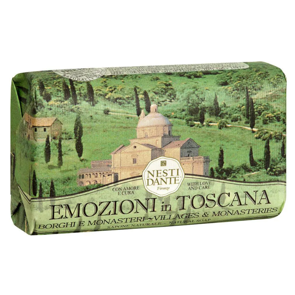 A sensibilidade e sabedoria da Nesti Dante, empresa de Florença, com a natureza, a arte e a vida, exprime como um tributo à sua terra com uma linha sugestiva de sabonetes naturais chamada Emozioni in Toscana.Emozioni In Toscana Vilas e Monastérios possui uma fragrância evocativa que une a terra e o céu, um buquê de incensos para restabelecer o equilíbrio entre a mente e o corpo.