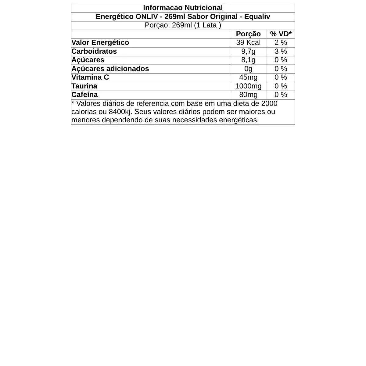 Energético Onliv - 269Ml Sabor Original - Equaliv