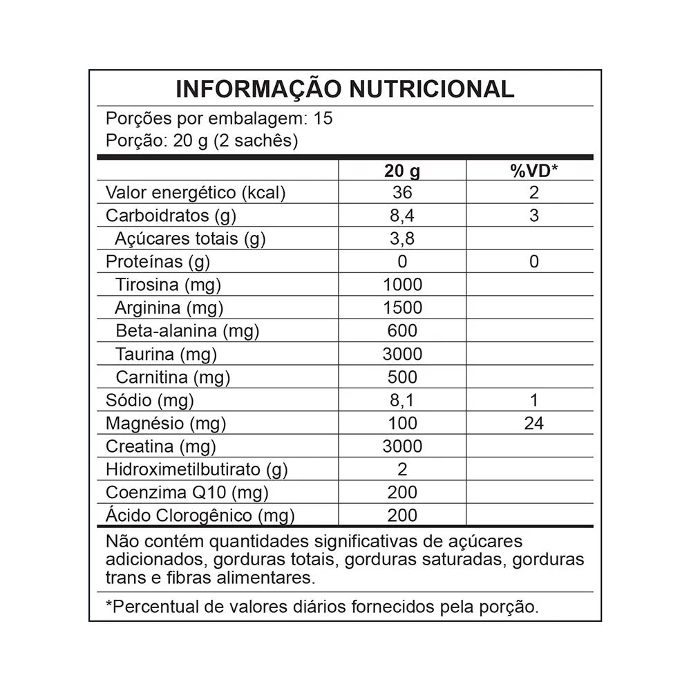 Em um ritmo acelerado da vida, é comum enfrentar desafios como falta de energia, dificuldade para perder peso e risco de perder massa muscular em dietas restritivas. O cansaço afeta a motivação, e a falta de resultados nos treinos pode desanimar. Nesses momentos, precisamos de uma solução mais completa. O que você precisa é de mais energia, mais desempenho, mais resultados. O Energy ATP é um suplemento alimentar que auxilia no metabolismo energético das gorduras, contribuindo para o aumento do desemprenho físico e funcionamento neuromuscular, mantendo seu corpo em movimento ao longo do dia. Energy ATP+ mantém tudo oque você já ama no Energy ATP, mas vai além. Com Coenzima Q10, Beta Alanina e uma fórmula sem xilitol, ele potencializa ainda mais o seu dia a dia. , Ingredientes: Creatina monohidratada, hidroximetilbutirato de cálcio, taurina, L-arginina, L-tirosina, beta-alanina, L-carnitina, extrato de café verde, malato de magnésio, coenzima Q10, edulcorantes isomaltulose e glicosídeo esteviol de Stevia rebaudiana Bertoni, acidulante ácido cítrico, aroma idêntico ao natural de limão, espessante goma xantana, antiumectantes dióxido de silício e estearato de magnésio e corante clorofilas. Não contém Lactose Não contém Glúten
