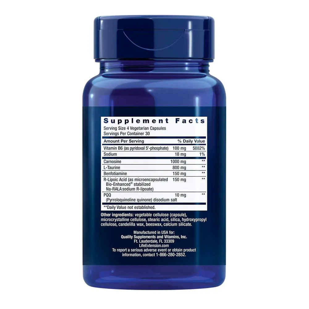Frasco com 120 cápsulas fáceis de ingerir, oferecendo excelente rendimento. Produto prático para uso diário conforme recomendação do fabricante, com padrão Life Extension de qualidade e pureza. Validade longa