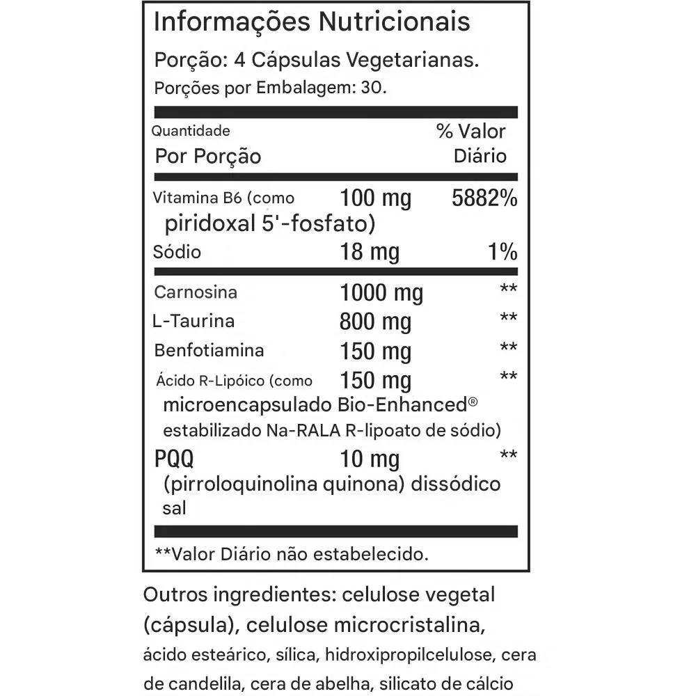 Indicado para quem busca suporte nutricional para o metabolismo energético. A fórmula em cápsulas facilita a ingestão diária, oferecendo uma forma prática de complementar a alimentação com PQQ.