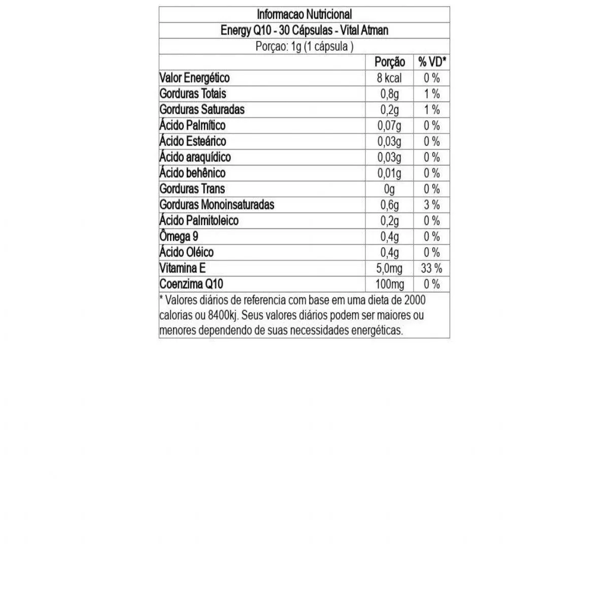 Energy Q10 - 30 Cápsulas - Vital Atman