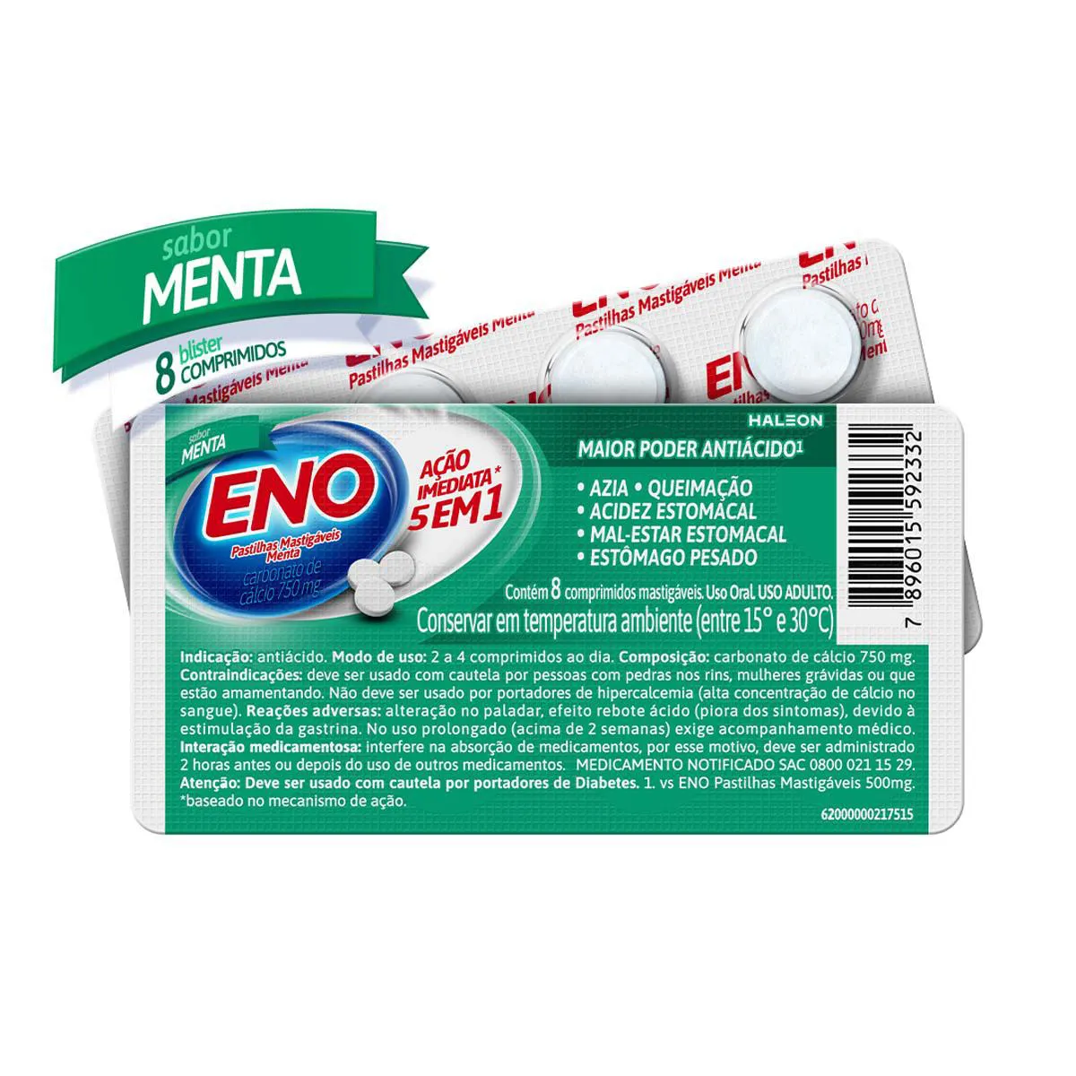 Antiácido Eno Menta 8 pastilhas mastigáveis