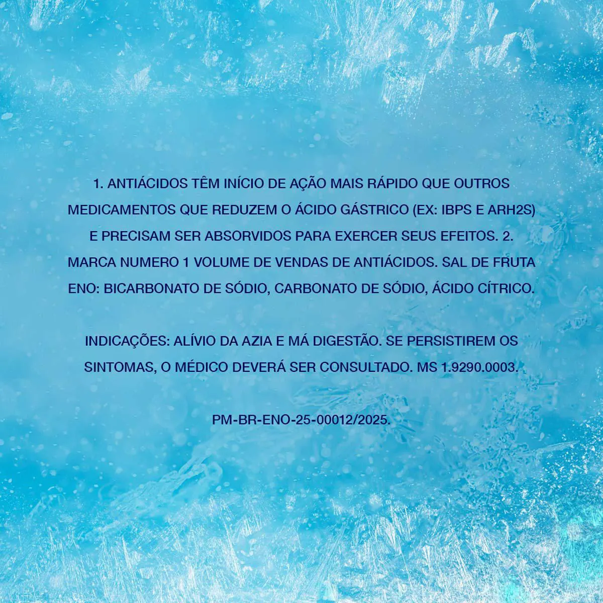 - Sal de Fruta Eno Ice Mint é indicado para alívio da azia e má digestão.