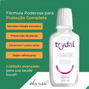 Transforme sua rotina de cuidados bucais com o Enxaguante Bucal Trydal Clinical-Pro 250ml – a exclusividade e qualidade que só a Trydal® oferece. Experimente a tecnologia inovadora e a eficácia dos íons de Cloramina-T, garantindo proteção, clareamento e saúde incomparáveis para o seu sorriso.