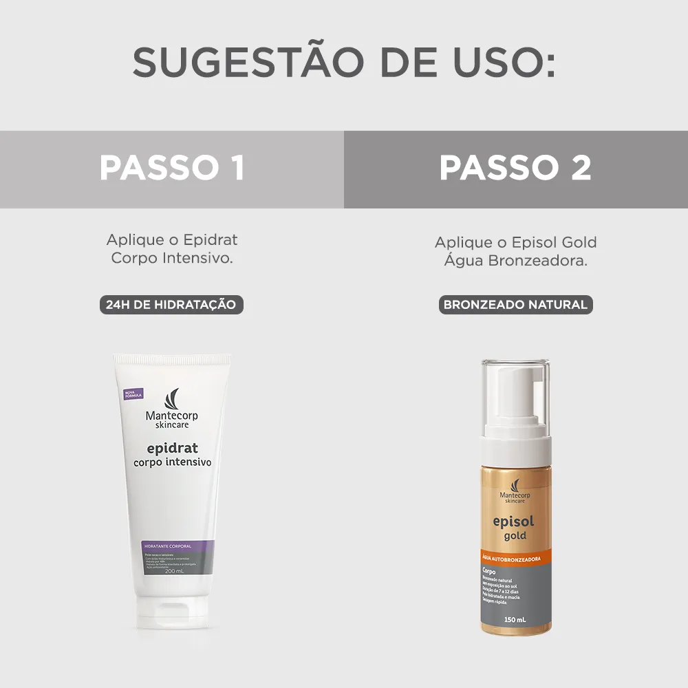 EPISOL GOLD ÁGUA AUTOBRONZEADORA possui em sua formulação agentes bronzeadores e Ácido Hialurônico que proporcionam uma pele hidratada com bronzeado natural, uniforme, duradouro e com efeito iluminador sem exposição à radiação solar. Sua textura ultraleve possui toque seco, é de rápida absorção, secagem rápida e deixa a pele sem a sensação de pegajosidade.É não comedogênico e dermatologicamente testado.