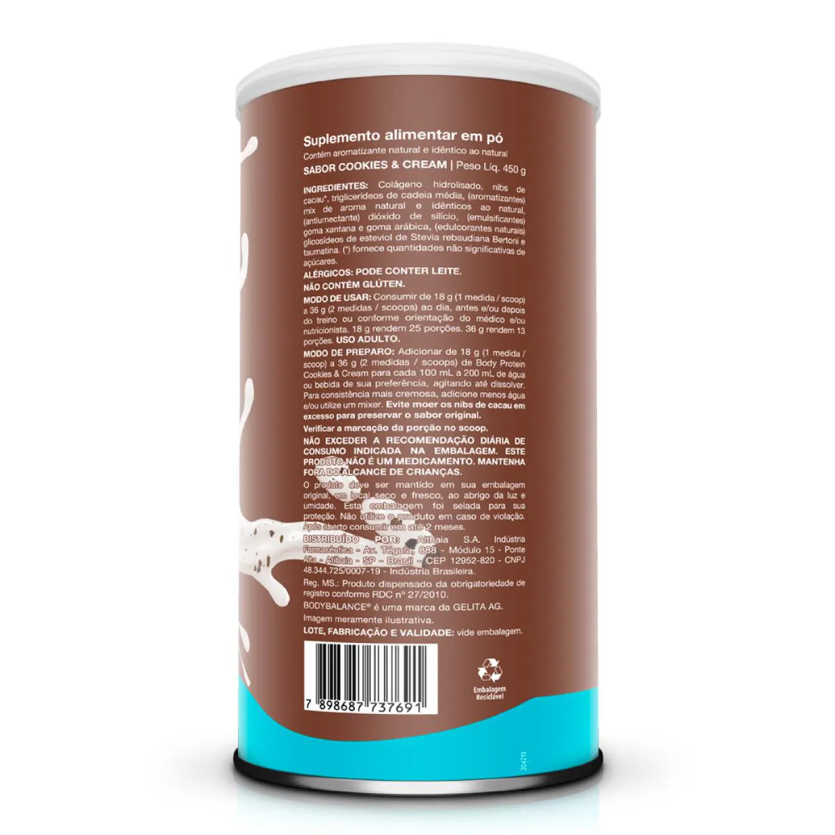 Whey Protein com Colágeno Sabor Cookies and Cream Equaliv Body Protein é um suplemento em pó à base de peptídeos de colágeno isolado com tecnologia BODYBALANCE®, sabor cookies & cream, formulado para suporte à massa muscular, recuperação pós-treino, definição corporal e controle de peso.