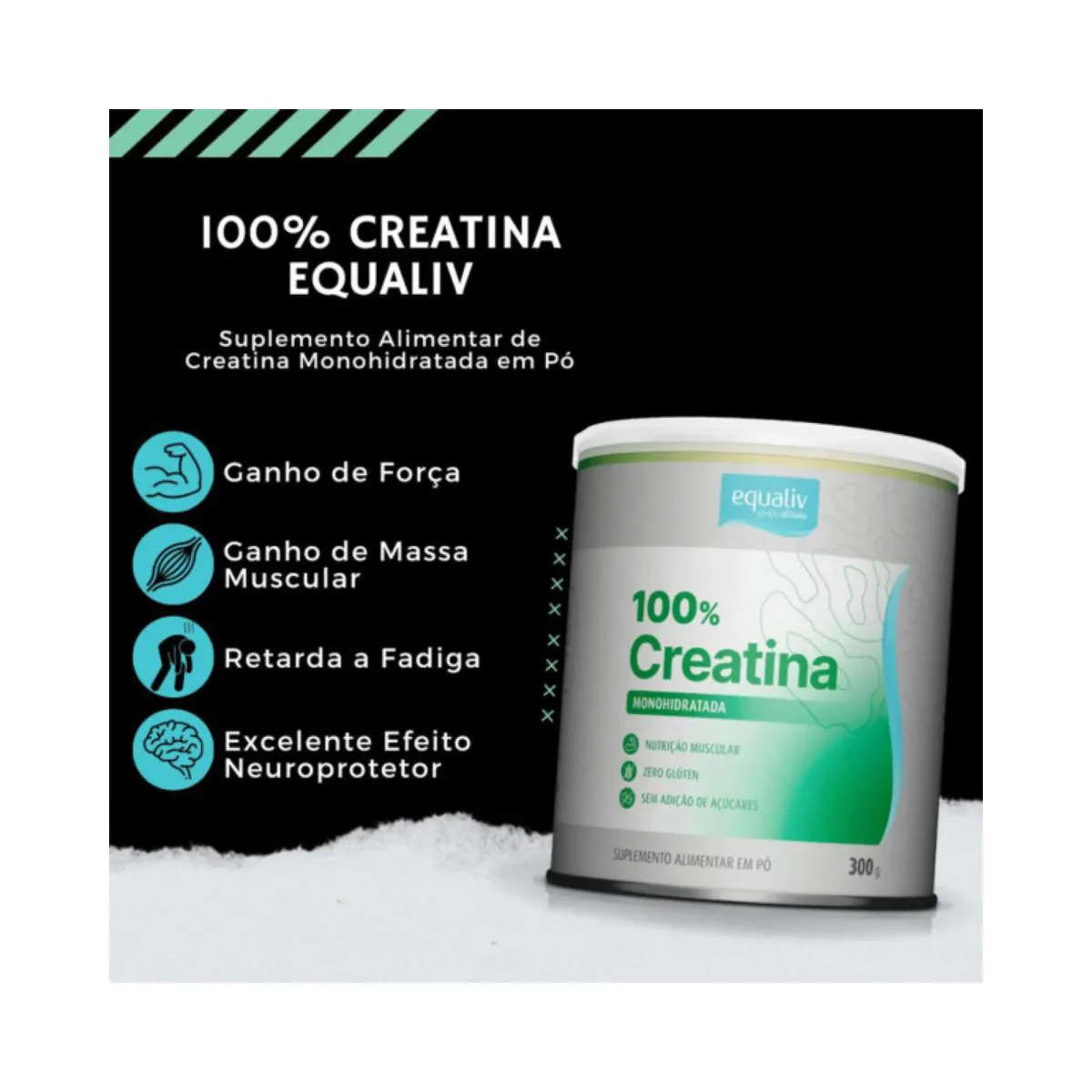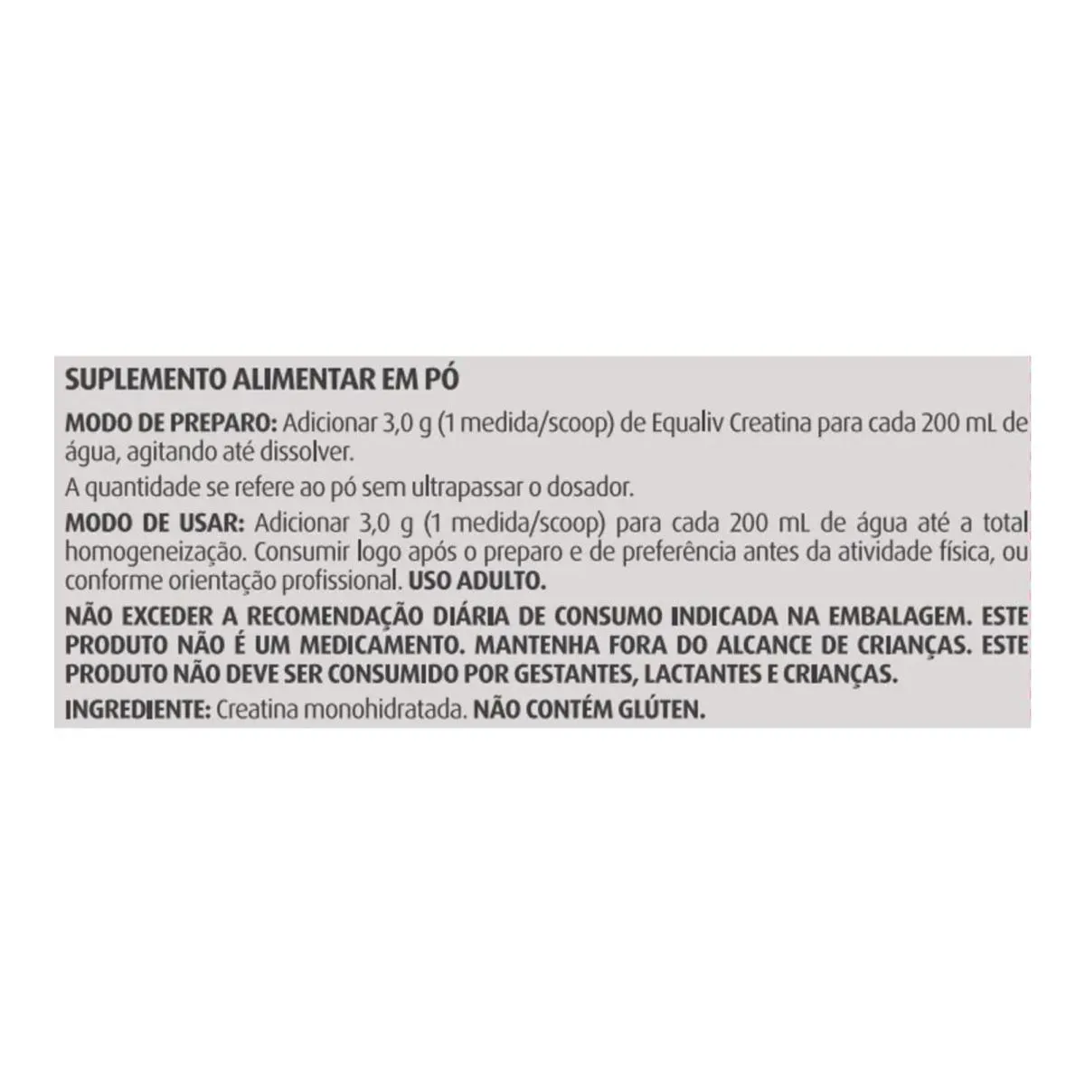 Creatina 100% Monohidratada em Pó 300g – Equaliv Desempenho físico durante exercícios repetidos de curta duração e alta intensidade (musculação, crossfit, funcional, futebol, entre outros). Quando o exercício físico é levado à exaustão, a quantidade de creatina no músculo diminui, assim como a produção de energia, comprometendo a continuação do eficiente trabalho muscular. 100% Creatina MonohidratadaSeus suplementos esportivos de base, agora com qualidade farma. Modo de uso: Misturar 3 g (1 medida / 1 scoop) em aproximadamente 200 ml em água ou bebida de sua preferência até a total homogeneização. Consumir logo após o preparo e de preferência antes da atividade física, ou conforme orientação profissional. USO ADULTO. Lata com 300 g. Ingredientes: Creatina monohidratada. “NÃO CONTÉM GLÚTEN.” Modo de uso: Adicionar 3,0 g (1 medida/ scoop) para cada 200 ml de água até a total homogeneização. Consumir logo após o preparo e de preferência antes da atividade física, ou conforme orientação profissional. INGREDIENTES: Creatina monohidratada. "NÃO CONTÉM ALERGÊNICOS" "USO ADULTO. NÃO EXCEDER A RECOMENDAÇÃO DIÁRIA DE CONSUMO INDICADA NA EMBALAGEM. Imagens meramente ilustrativas. Todas as Informações Divulgadas são de Responsabilidades Exclusivas do Fabricante / fornecedor.