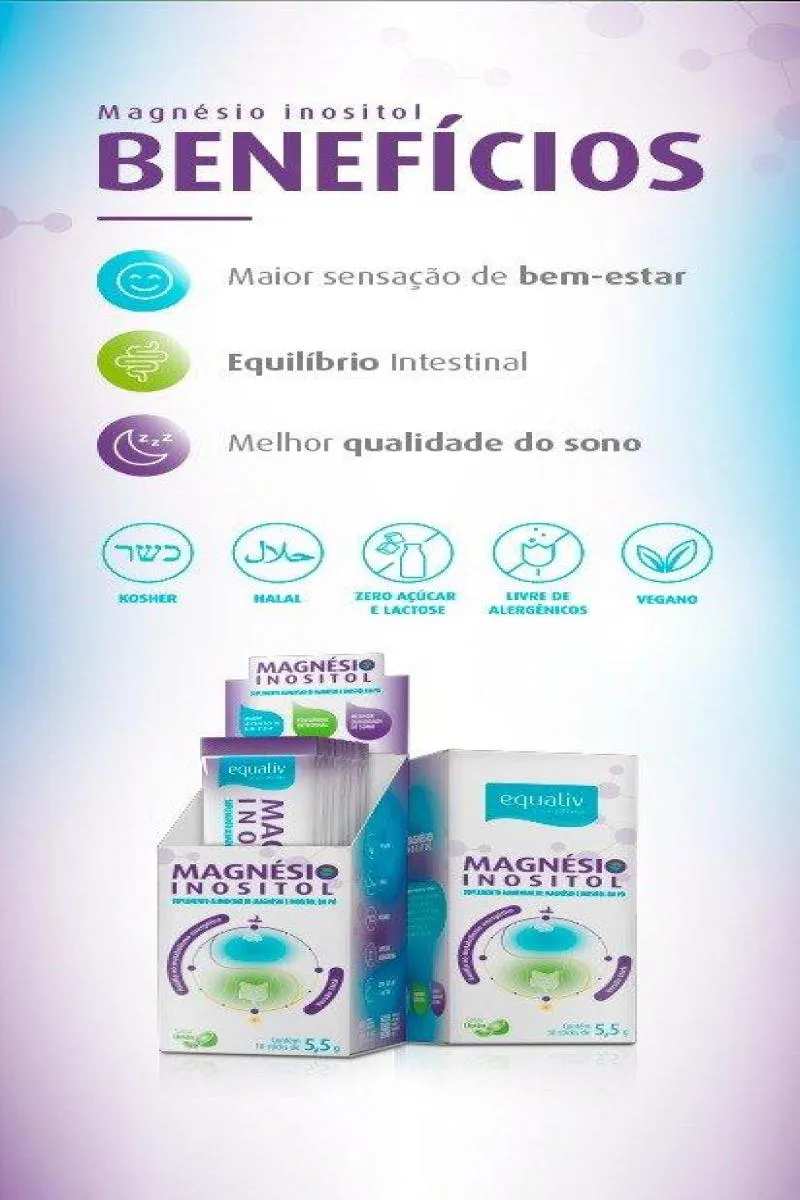 ✔ Melhora o bem-estar geral, promovendo equilíbrio físico e mental Mantenha o equilíbrio no seu dia a dia! Consuma o Magnésio Inositol Equaliv para apoio à sua saúde e bem-estar de forma prática e eficaz.